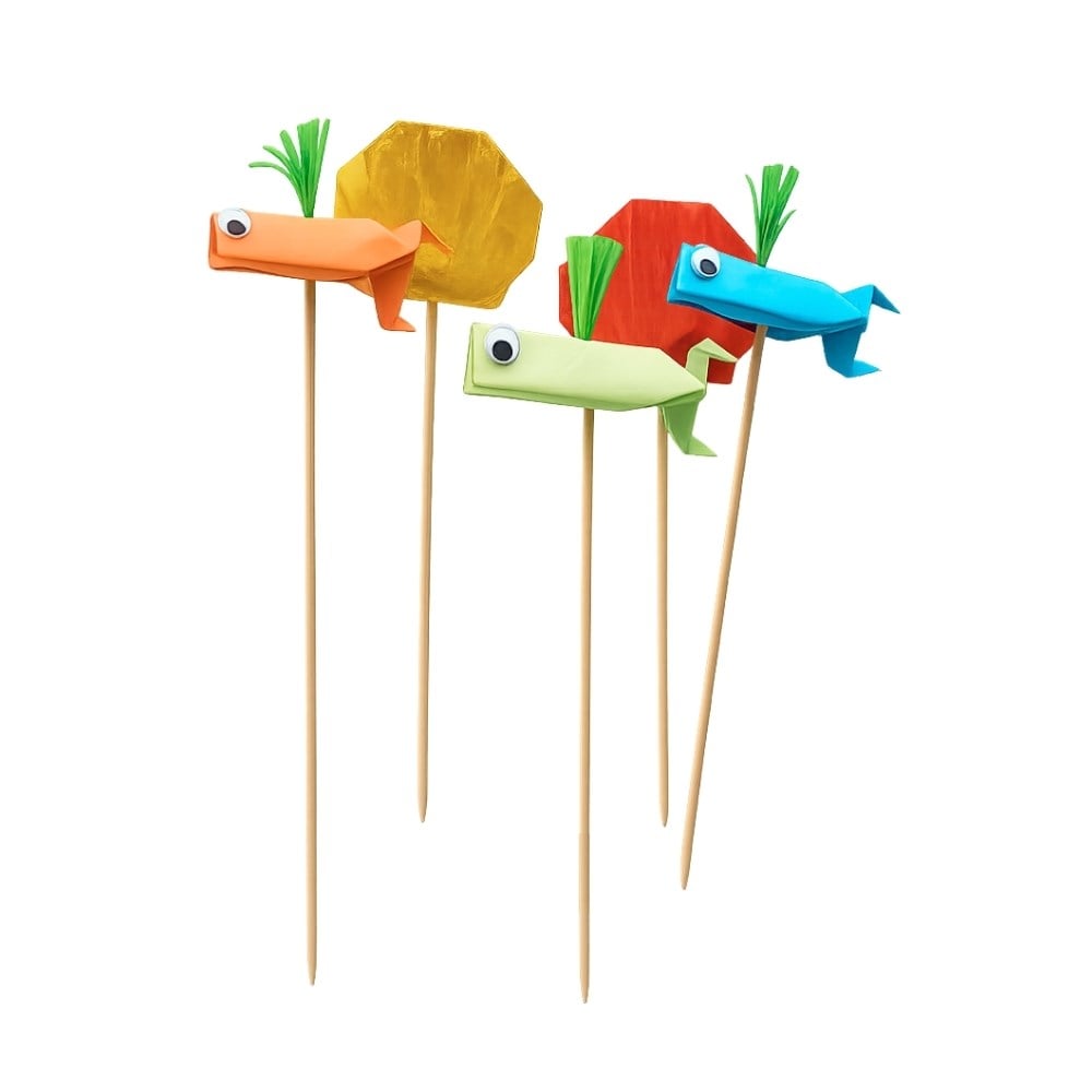 Paket içerisinde 3 adet, yeşil, turuncu, mavi kağıttan origami balina ve 2 adet, kırmızı ve sarı kağıttan origami midye pasta üstü süsü mevcuttur.