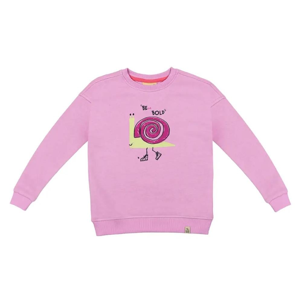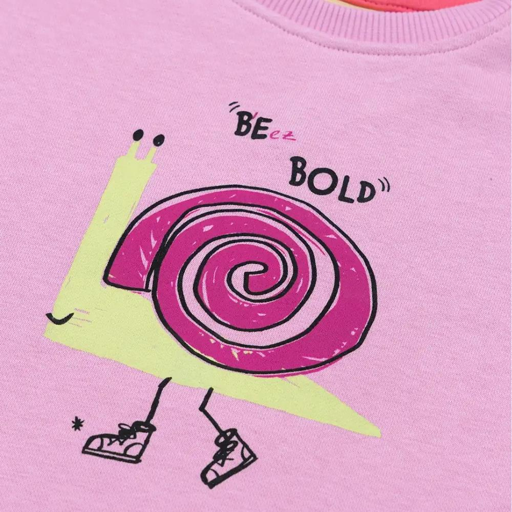Çocuk bisiklet yaka,  eğlenceli çok renkli emprime  baskılı (su bazlı), unisex ve rahat kalıp sweatshirt - Pembe Bonbon