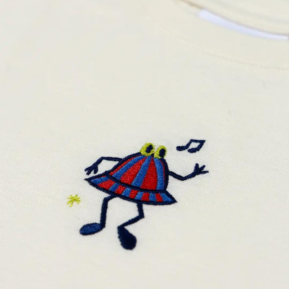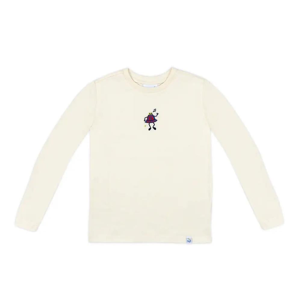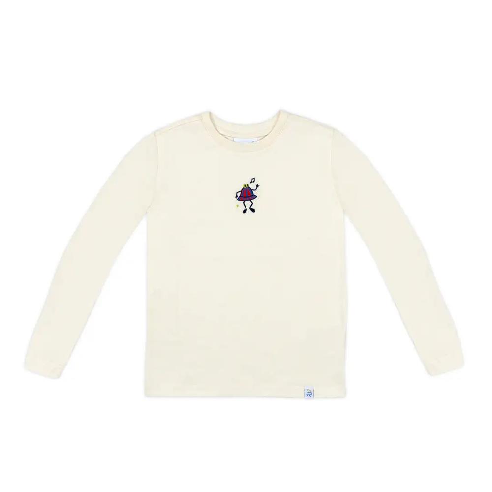 Çocuk bisiklet yaka,  eğlenceli nakışlı, uzun kollu unisex t-shirt - Ekru