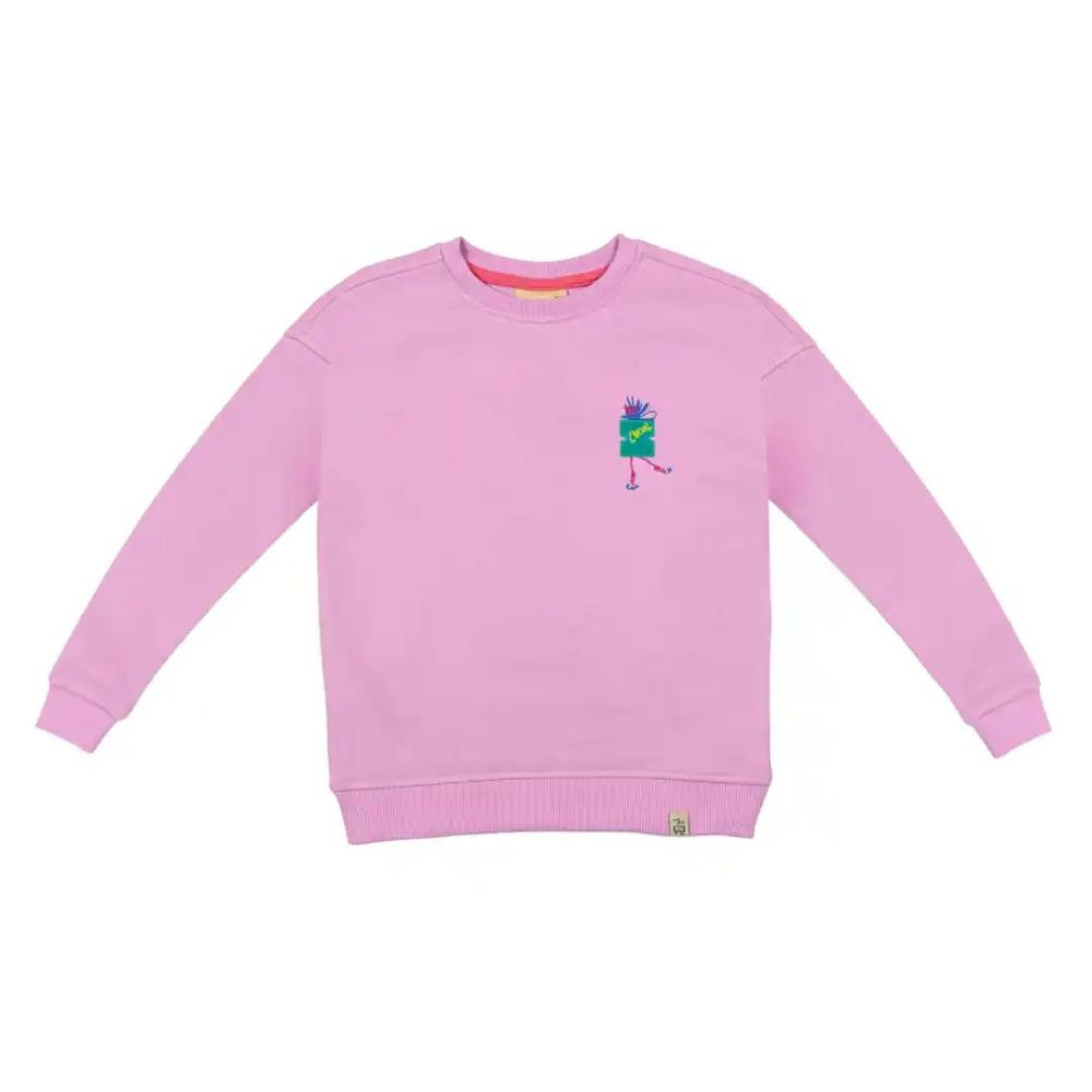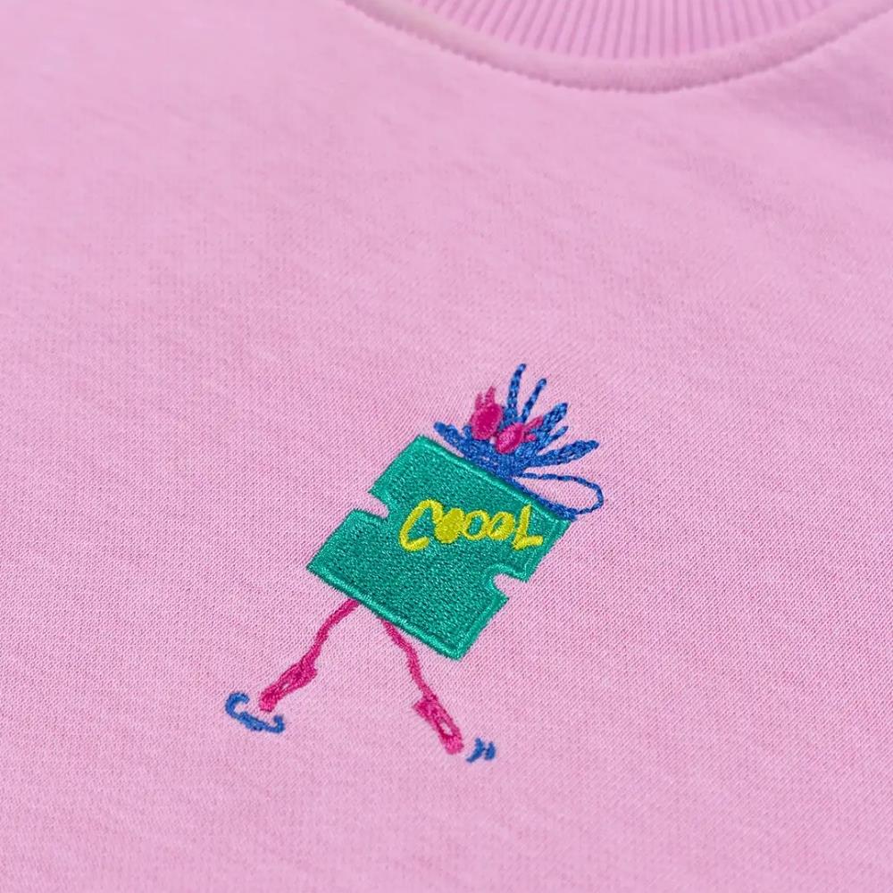 Çocuk bisiklet yaka,  eğlenceli nakış detaylı, kız çocuk ve rahat kalıp sweatshirt - Pembe Bonbon