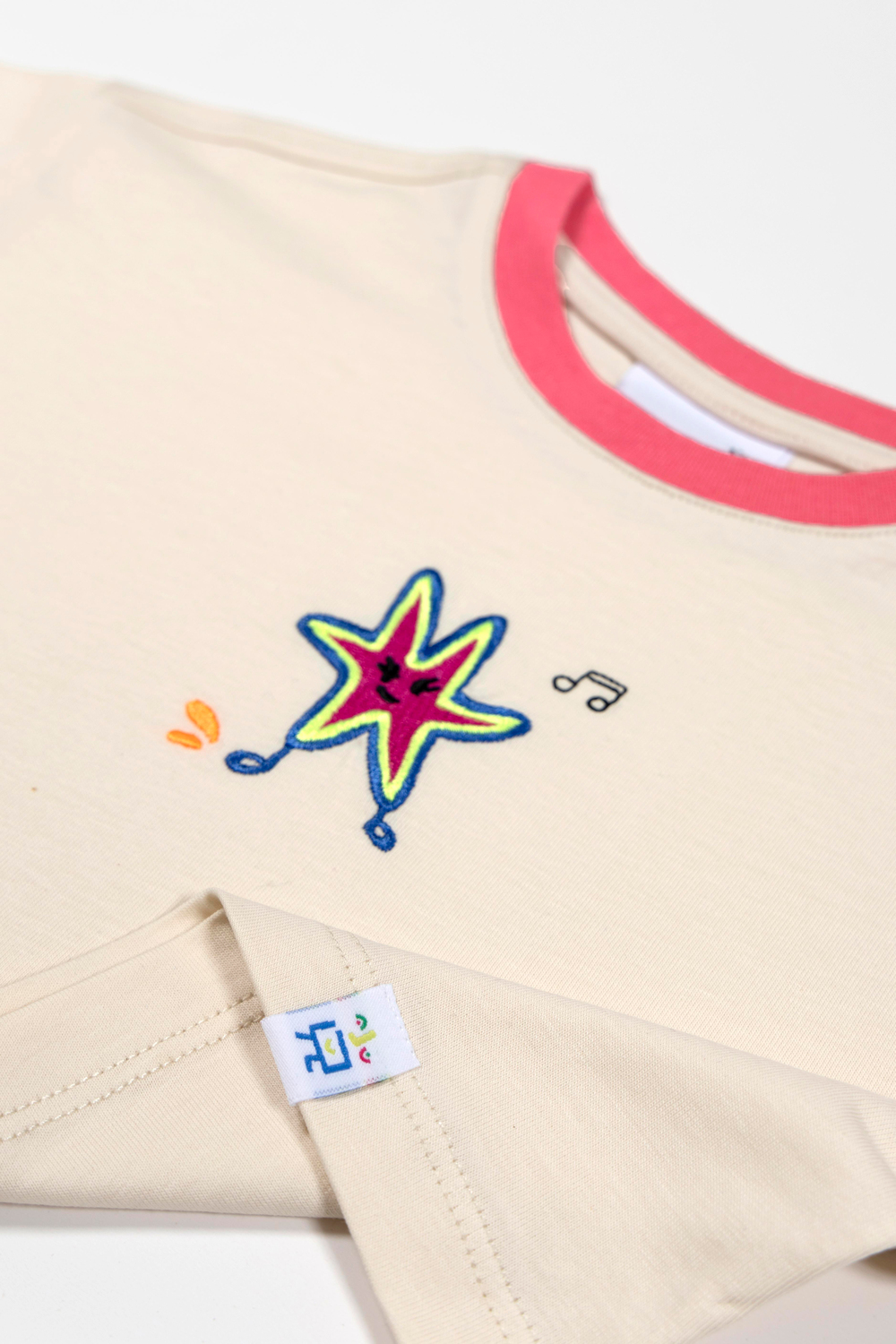 Beetle Beez Ekru Oversize Crop Tişört Hey J'oyster