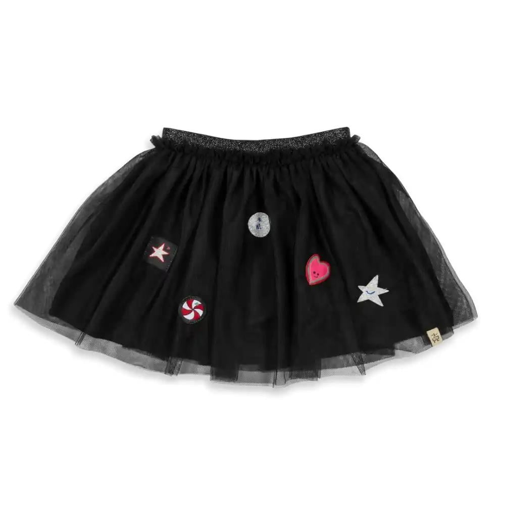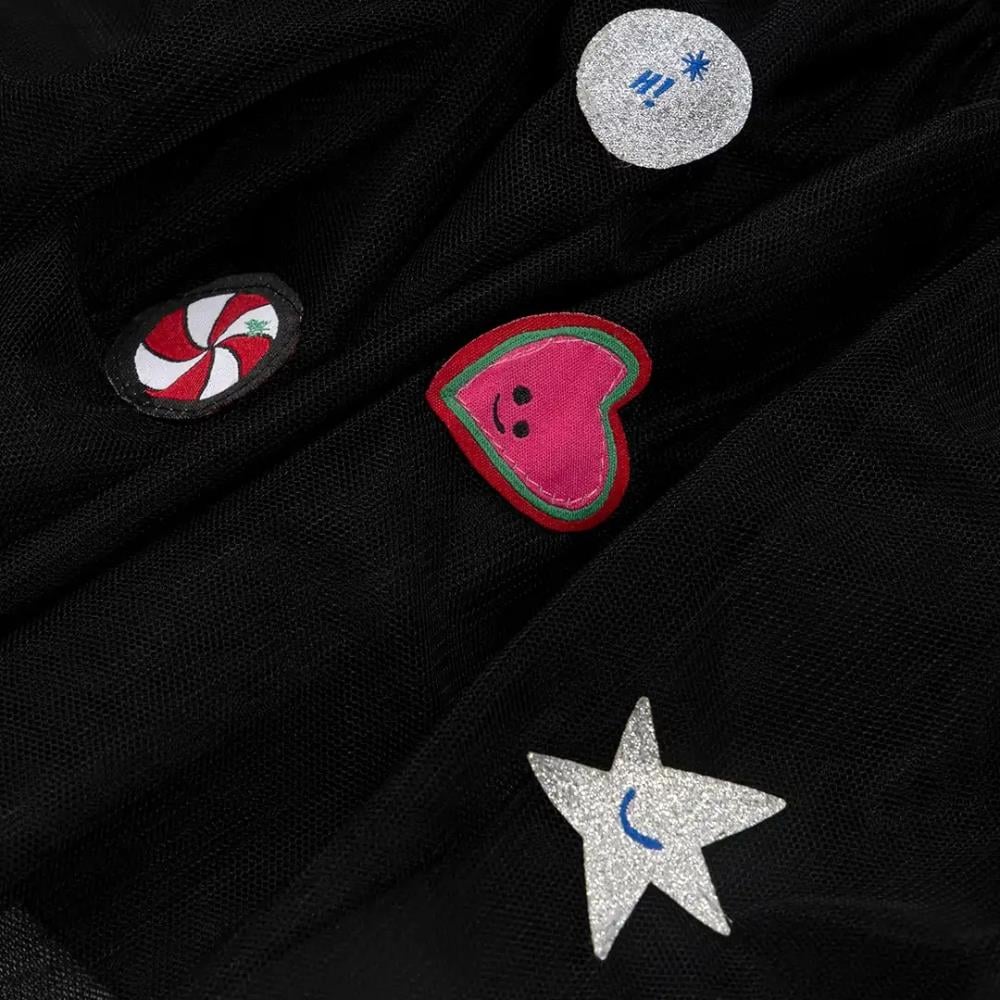 Kız Çocuk Nakış Aplikeli Tütü Etek - Siyah Yumuşacık tül kumaştan üretilmiş etek üzerinde eğlenceli nakış aplikeleri yer alır. Parlak ve ışıltılı elastik lastik detayı bulunmaktadır.