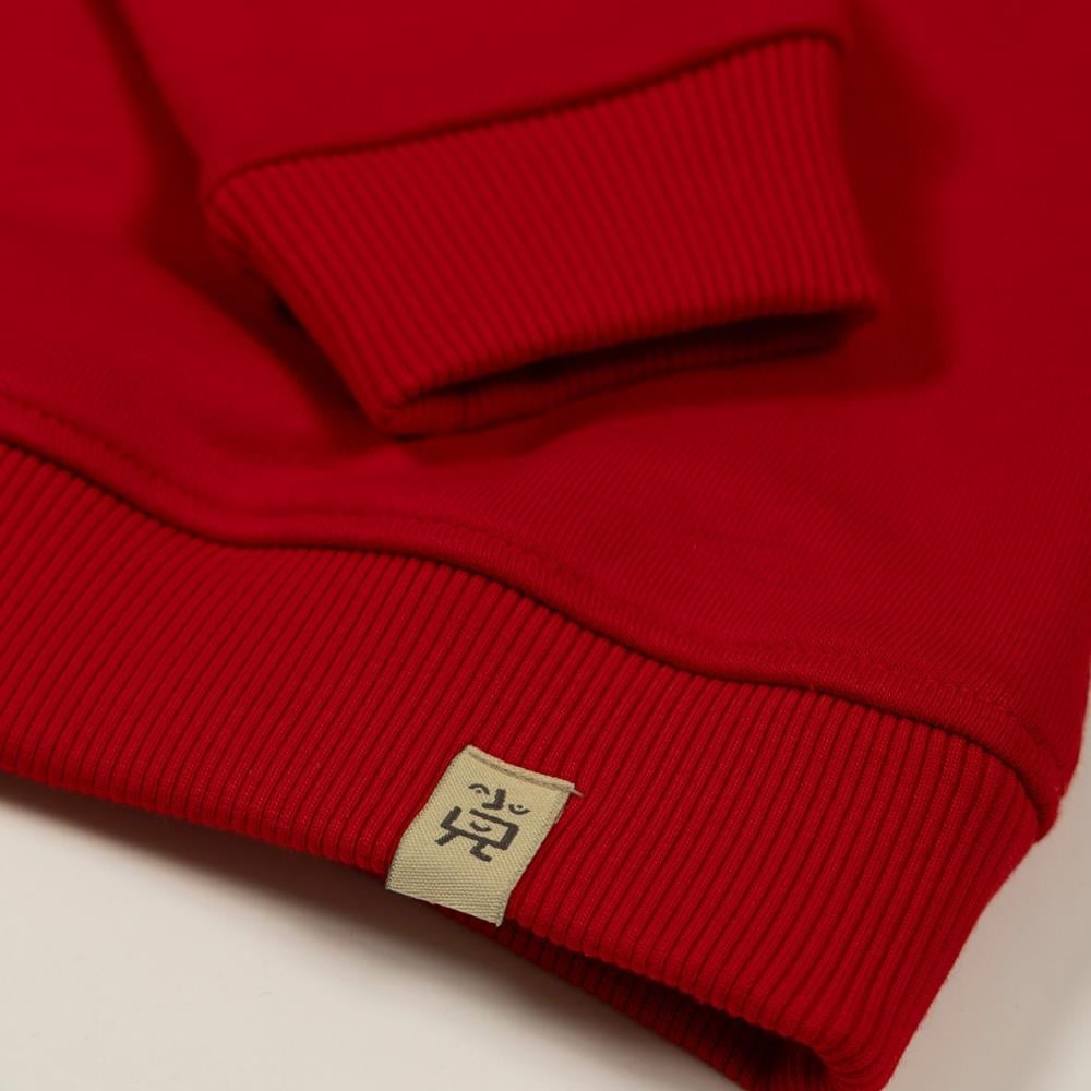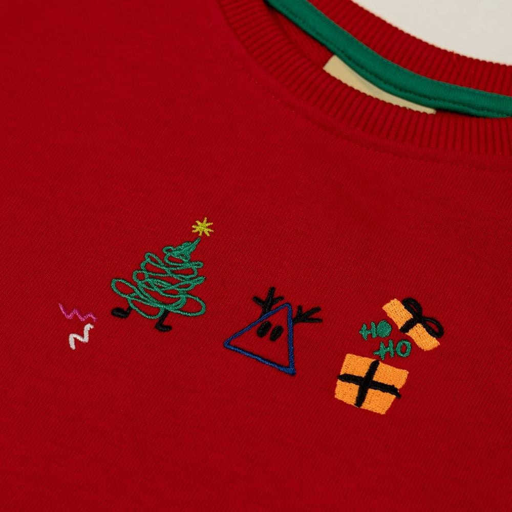 Çocuk bisiklet yaka, eğlenceli nakış detaylı, unisex ve rahat kalıp sweatshirt - Kırmızı Tok duran, rahat ve yumuşacık 3 iplik pamuklu kumaştan üretilmiştir (şardonsuz). Zıt Renk Kontrast Yaka Temizleme Biyesi_ Yeşil