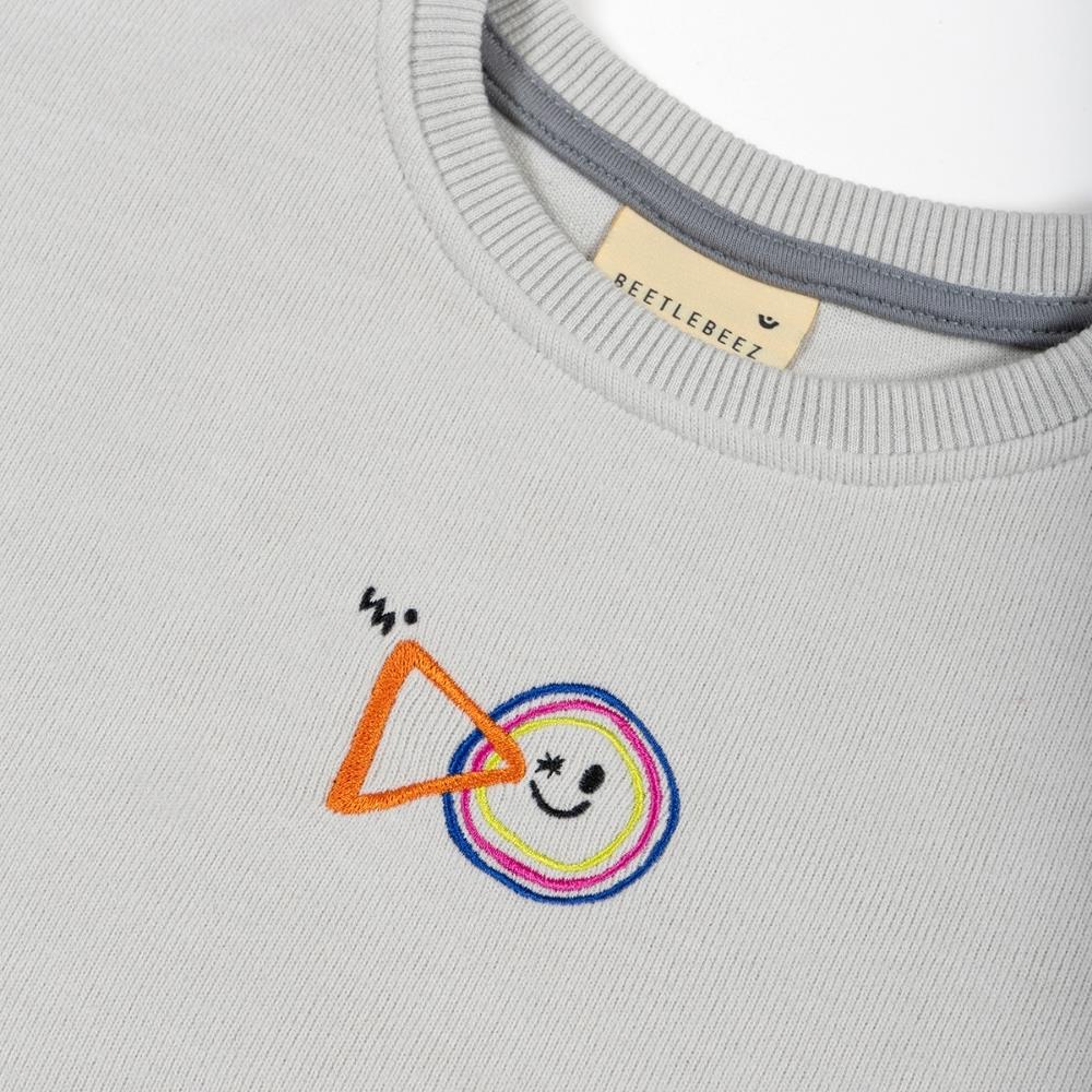 Çocuk bisiklet yaka,  eğlenceli nakış detaylı, unisex ve rahat kalıp sweatshirt - Açık Gri