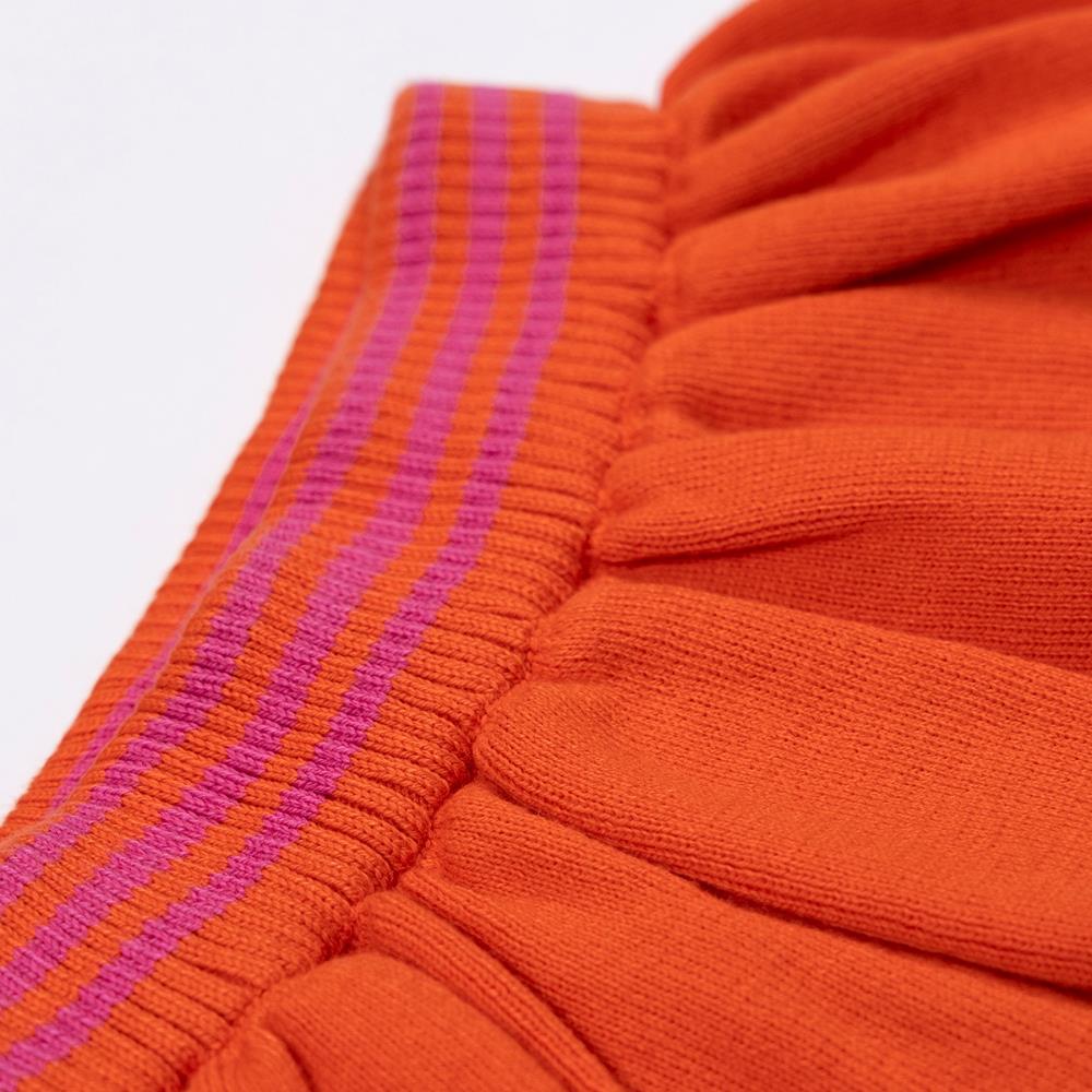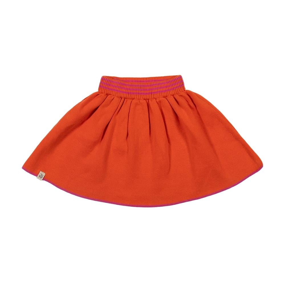 Kız Çocuk Triko Etek - Turuncu / Pembe & Turuncu Çizgili Biyeli Bel Kemeri %100 pamuklu organik kumaştan üretilmiştir. Kolayca kombinlenebilir, her mevsim için uygundur!