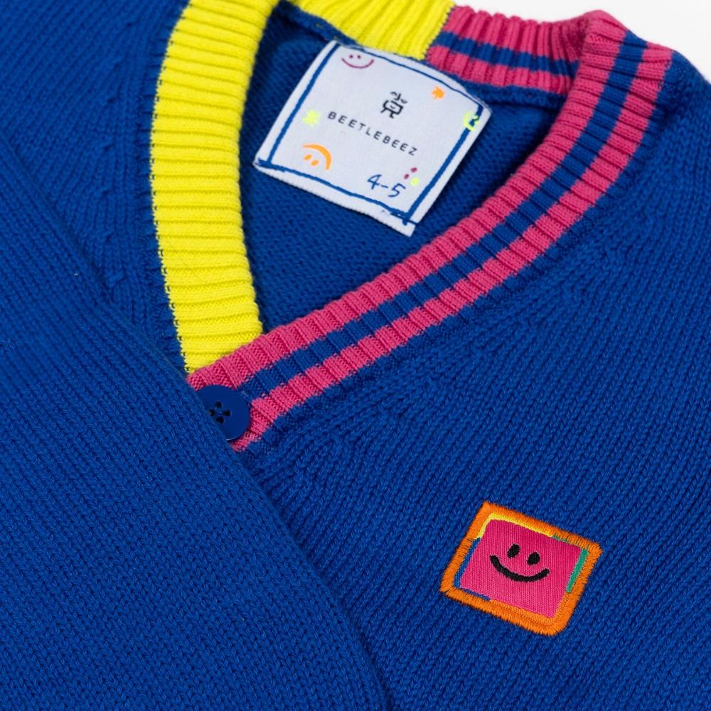 Nakış Aplikeli Kontrast Biyeli Triko Hırka - Mavi / Mavi & Pembe & Lime Çizgili Biyeli %100 pamuklu organik kumaştan üretilmiştir. Kolayca kombinlenebilir, her mevsim için uygundur!