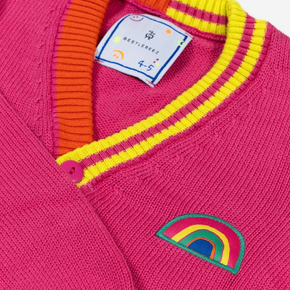 Çocuk Nakış Aplikeli Çizgili Triko Ceket - Pembe/ Turuncu & Pembe & Lime Çizgili Biyeli %100 pamuklu organik kumaştan üretilmiştir. Kolayca kombinlenebilir, her mevsim için uygundur!