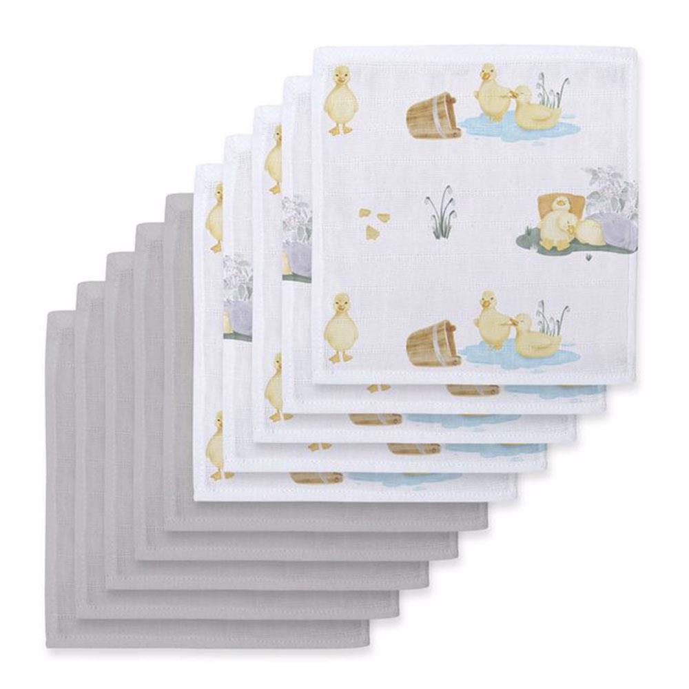 Deux Lapins Petits Canetons & Cotton Grey 10`lu Müslin Ağız Bezi Paketi