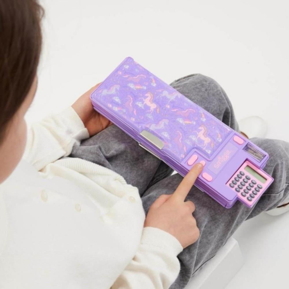 Eclipse Pop Out Kalem Kutusu, Smiggle kalemlerinizi saklamak ve düzenlemek için harika bir seçenektir. Manyetik kapaklı iki geniş bölmesi sayesinde tüm kırtasiye malzemelerinizi kolayca düzenleyebilirsiniz. Dahili kalem yuvalarına sahip açılır çekmece bölmesi, mini silgi çekmecesi, açılır kalemtıraş ve açılır hesap makinesi gibi interaktif özellikleriyle okulda kullanım konforunu artırır. Kişiselleştirilebilir zaman çizelgesi kartı ve isim etiketi sayesinde çantanızda kolayca bulunur.