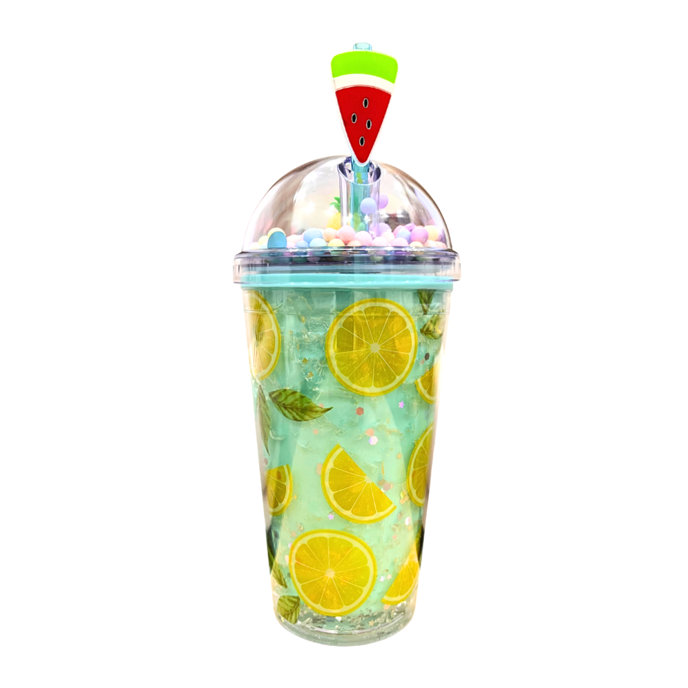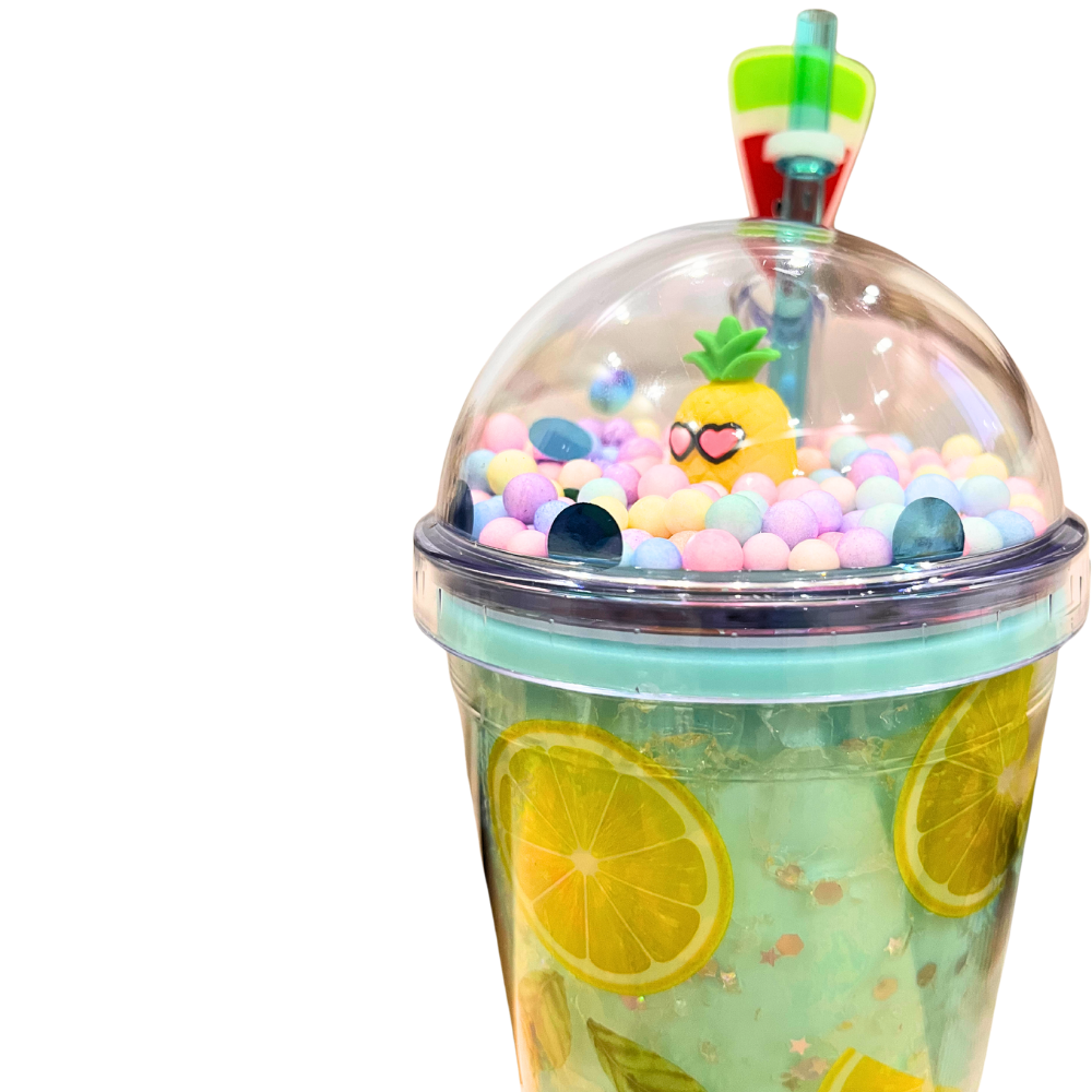 • Buzlu lime desenli plastik pipetli suluk, eğlenceli figürlerle süslenmiş ve su sızdırmaz tasarımıyla dikkat çeker. Çocuklar için eğlenceli olacak şekilde simli detaylarla süslenmiştir.