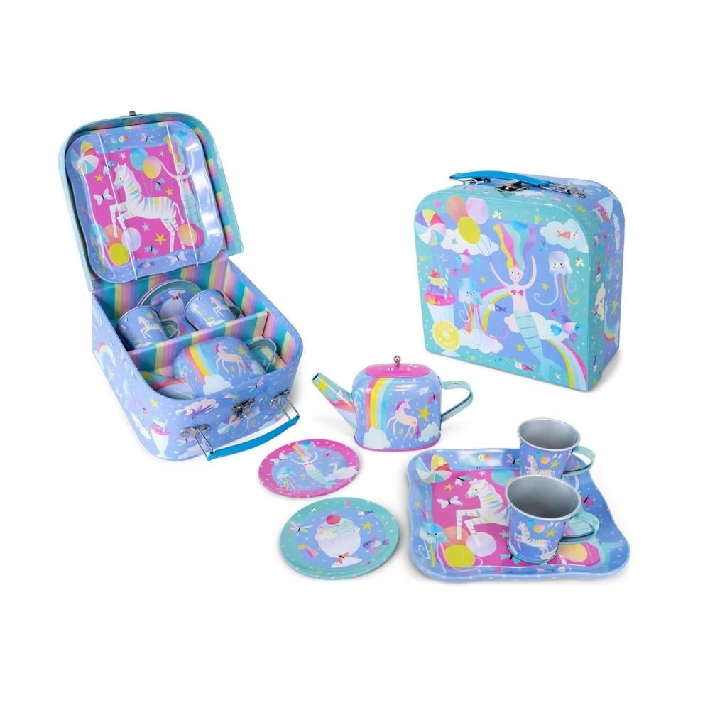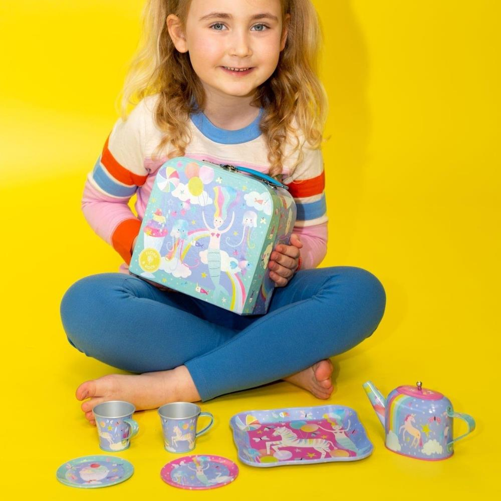 Floss & Rock Fantasy çay setimizde ışıltılı renklendirilmiş bir kutunun üzerinde denizkızı , gökkuşağı desenleri bulunmaktadır. Floss & Rock Çay Seti kutusunun içindeyse bir demlik, iki fincan, iki fincan tabağı ve bir tepsi bulacaksınız. Çay partisindeki misafirlere servis yapmak için harika değil mi? Floss & Rock'ın özenle tasarladığı çay seti küçüklerimizin hayal gücünü geliştirirken aynı zamanda arkadaşlarıyla da oynayabileceği muhteşem bir hediye olacaktır. Enchanted tasarımlı çay setinin güzel kutusunun bir de taşıma kulpu bulunur, böylece istediği her yere götürebilir. Gıda ile temas edilmemelidir.