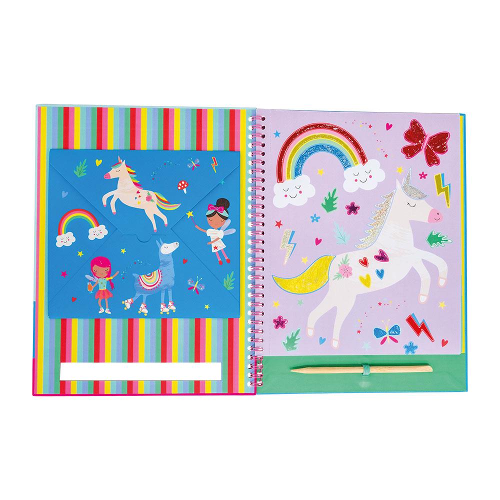 Bu farklı renkli folyolar ile eğlenmeye hazır mısınız? Süslemek için 8 eğlenceli resimli sayfayla her şeyi ışıldatın. Beyaz olan çıkartmayı soyun, bir folyo kağıdı seçin ve tahta kalem kullanarak çıkartma alanına sürtün ve harika bir resim yapın!
