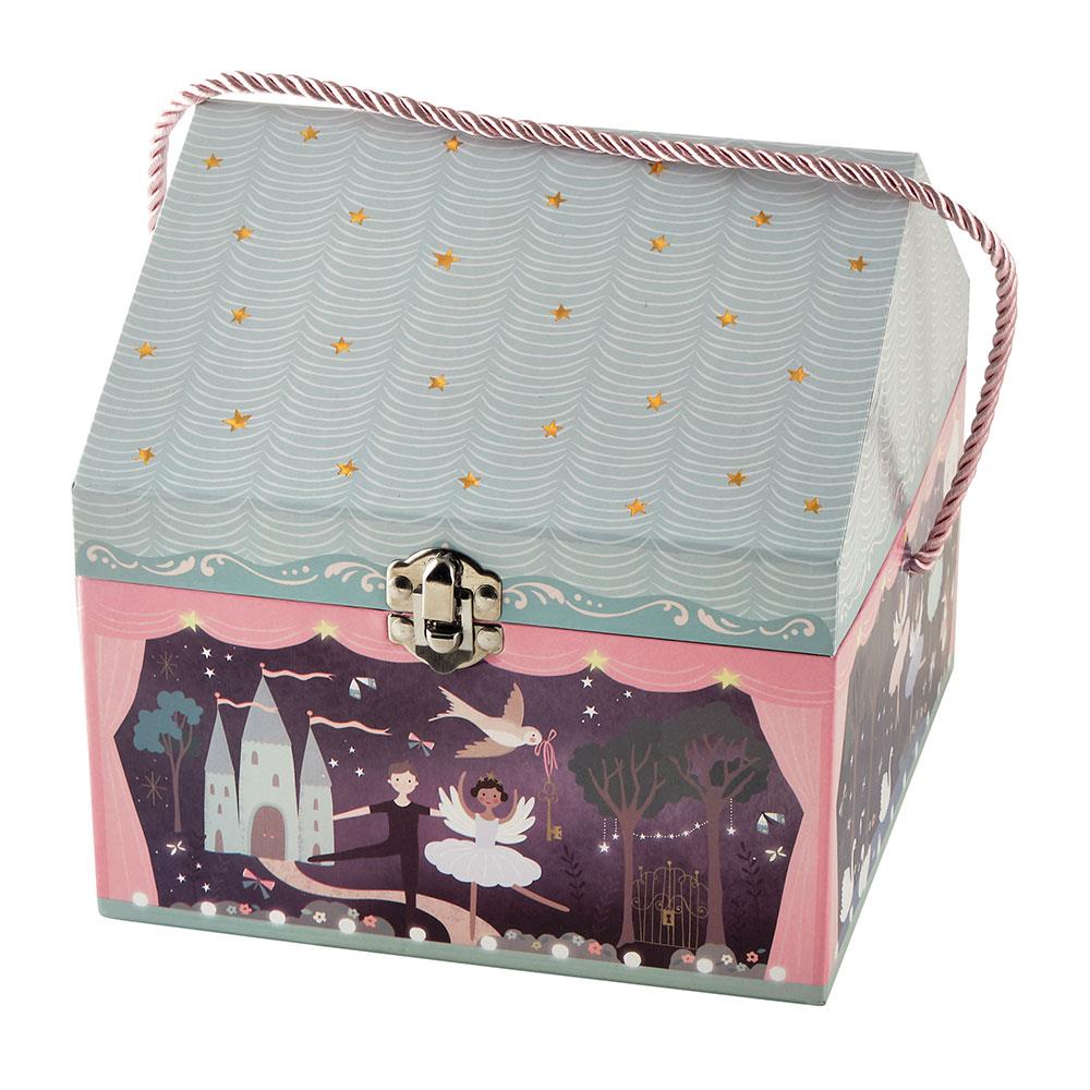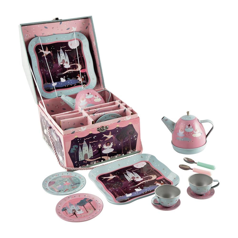 Floss & Rock'ın Enchanted tasarımlı müzikli çay seti, tiyatro sahnesi temalı resmedilmiş kutusunun içinde 1 müzikli çaydanlık, 1 tepsi, 2 kaşık, 2 fincan, 2 fincan tabağı ve 2 tabak bulunmaktadır. Floss & Rock çay setiyle misafirlerinize servis yaparken, "Kuğu Gölü" müziğini çalmak için çaydanlığın altını kurmanız yeterlidir. Enchanted tasarımında bale dansçıları, kaleler, büyülü ormanlar, kuşlar, kuğular ve göller bulunuyor. Küçüklerinizin kendi kendilerine, sizlerle veya arkadaşlarıyla harika hayali oyunlar oynaması için muhteşem bir hediye! Floss & Rock çay setinizi ev şeklindeki kutusuna koyup, pembe dokuma tutacağıyla istediğiniz her yere götürebilirsiniz.