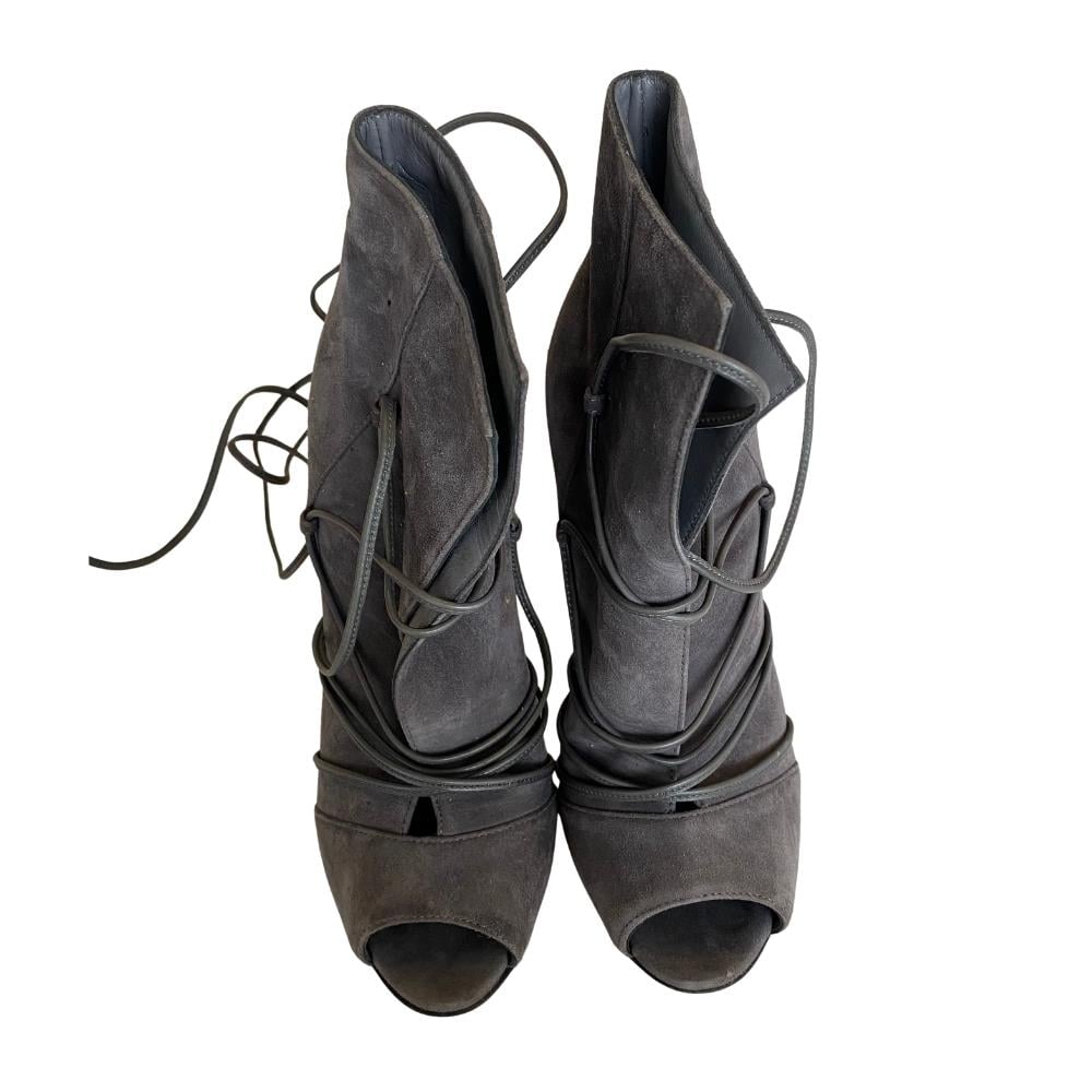 Gianvito Rossi Lace-Up Antrasit Süet Topuklu Ayakkabı - 35