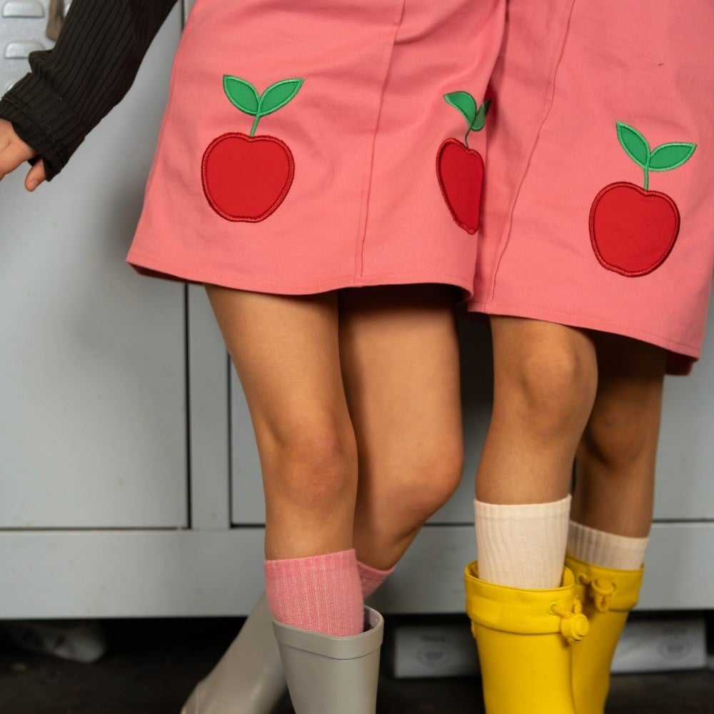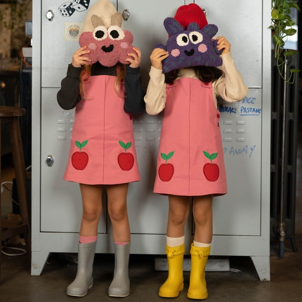 GigiPop APPLE Mini Elbise, rahat kesimi ve pamuk ağırlıklı yumuşak kumaşıyla çocukların gün boyu özgürce hareket edebilmesi için tasarlandı. %97 pamuk ve %3 elastan içeren esnek dokusu, çocuğun cildine nazikçe dokunurken hareket özgürlüğü sağlar. Askılı salopet formu ve yan çıtçıt detayları sayesinde kolayca giyilip çıkarılabilir. Ön yüzündeki eğlenceli elma aplikeleri ise tasarıma neşeli ve karakterli bir görünüm kazandırır. İnce pamuk astarıyla hafif ve nefes alabilen yapısı, hem oyun dolu günlerde hem de özel anlarda konfor sunar. Pembe ve yeşil 2 renk alternatifi bulunur.