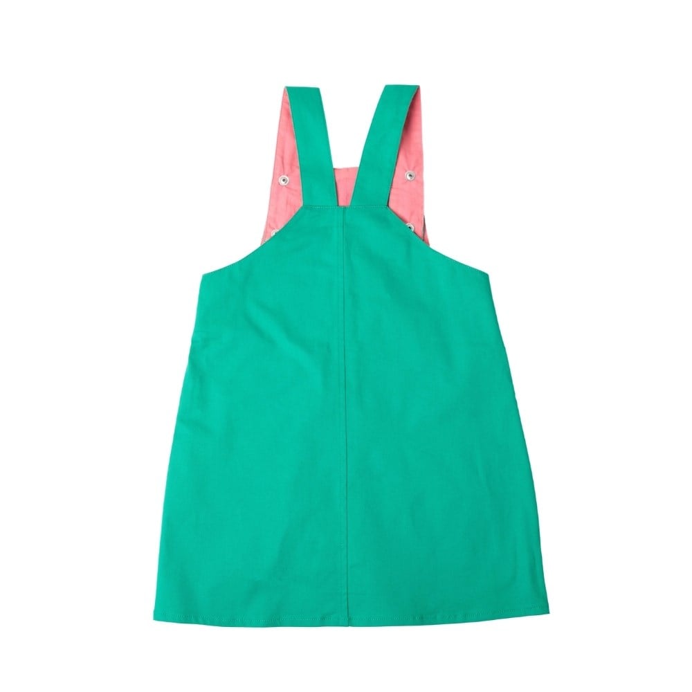GigiPop APPLE Mini Elbise, rahat kesimi ve pamuk ağırlıklı yumuşak kumaşıyla çocukların gün boyu özgürce hareket edebilmesi için tasarlandı. %97 pamuk ve %3 elastan içeren esnek dokusu, çocuğun cildine nazikçe dokunurken hareket özgürlüğü sağlar. Askılı salopet formu ve yan çıtçıt detayları sayesinde kolayca giyilip çıkarılabilir. Ön yüzündeki eğlenceli elma aplikeleri ise tasarıma neşeli ve karakterli bir görünüm kazandırır. İnce pamuk astarıyla hafif ve nefes alabilen yapısı, hem oyun dolu günlerde hem de özel anlarda konfor sunar. Pembe ve yeşil 2 renk alternatifi bulunur.