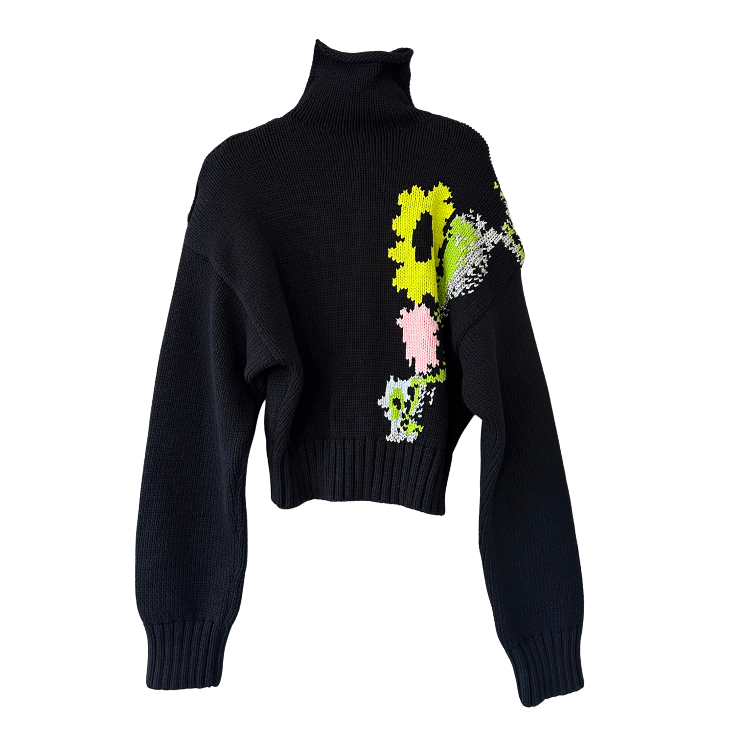 H&M Yeşil Neon Baskılı Boğazlı Kazak - XS