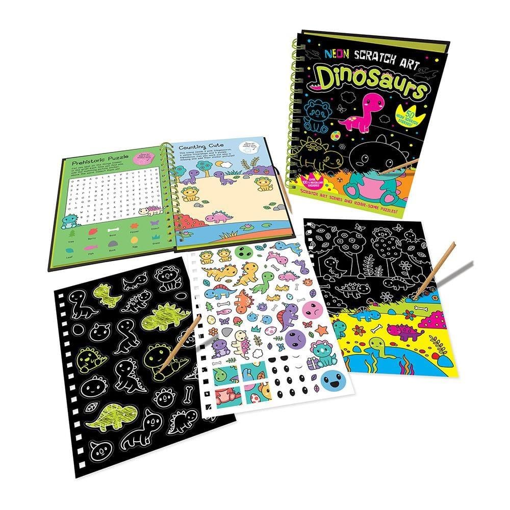 Ahşap karalama aletini alın ve 8 T-rexcellent kazı kazan kartını kazıyın! Hatta çizebileceğiniz 50 özel neon çıkartması ile yaratıcı çocuklar için mükemmel bir aktivite kitabı haline getiriyor.