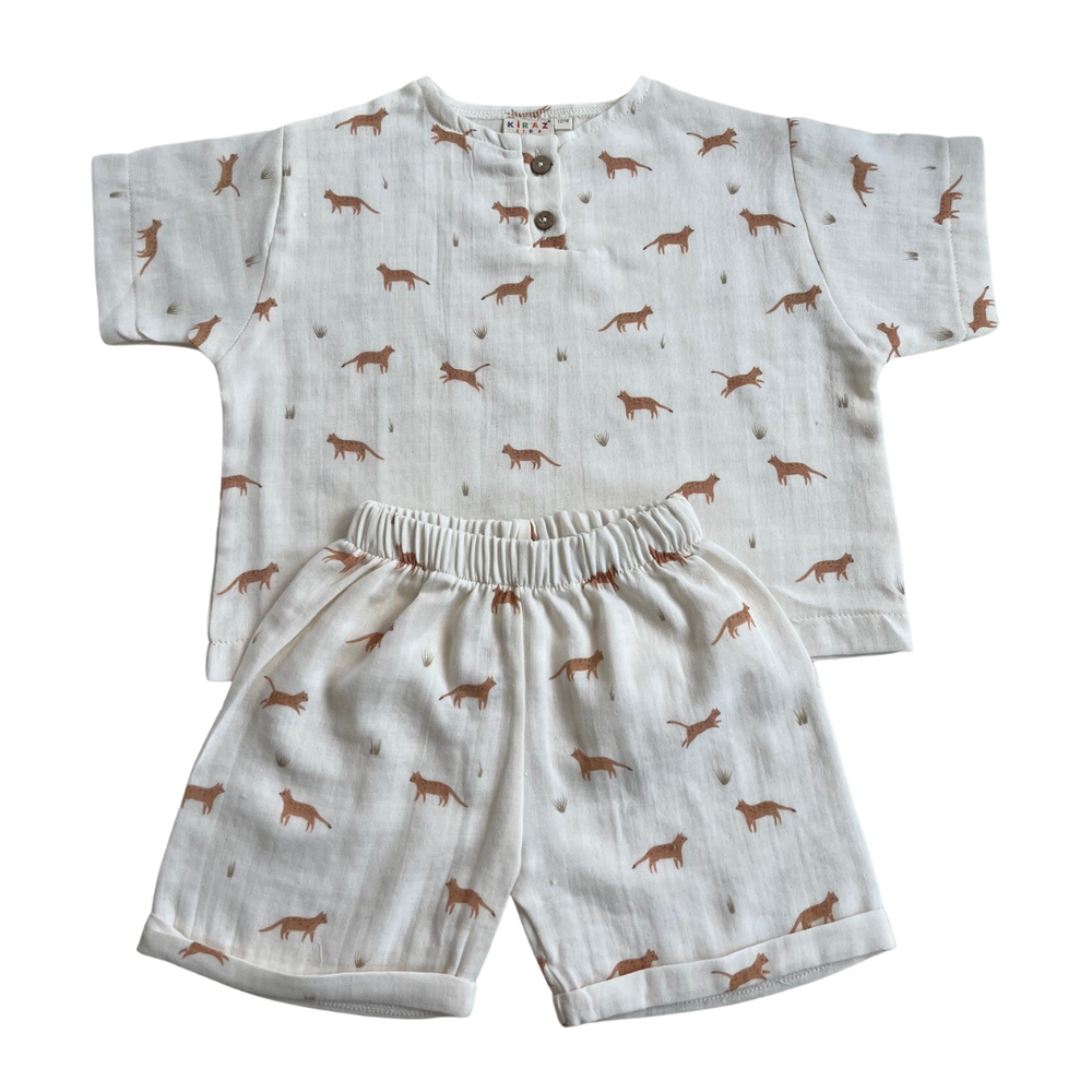 Kiraz Kids İki Kat Müslin Leopar Desenli Yazlık Takım