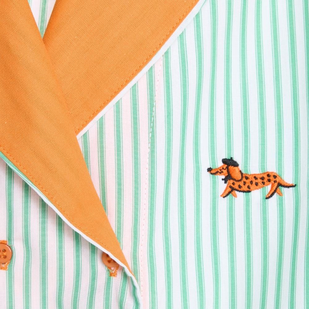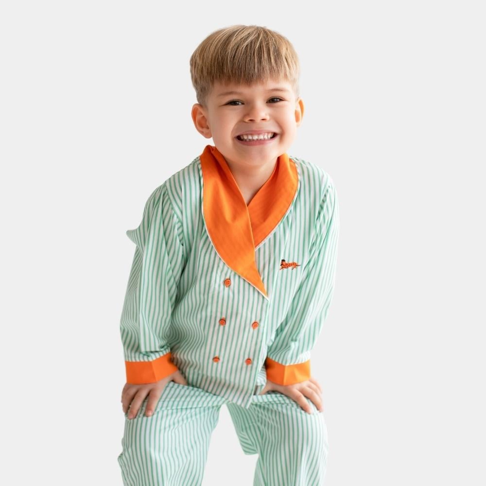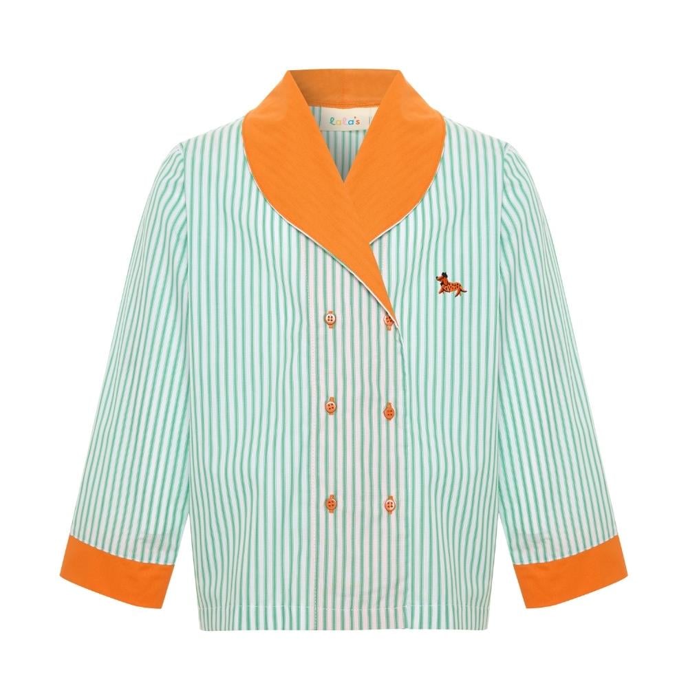 - Yaka, manşet ve bel lastik kemerinde turuncu garni detaylı