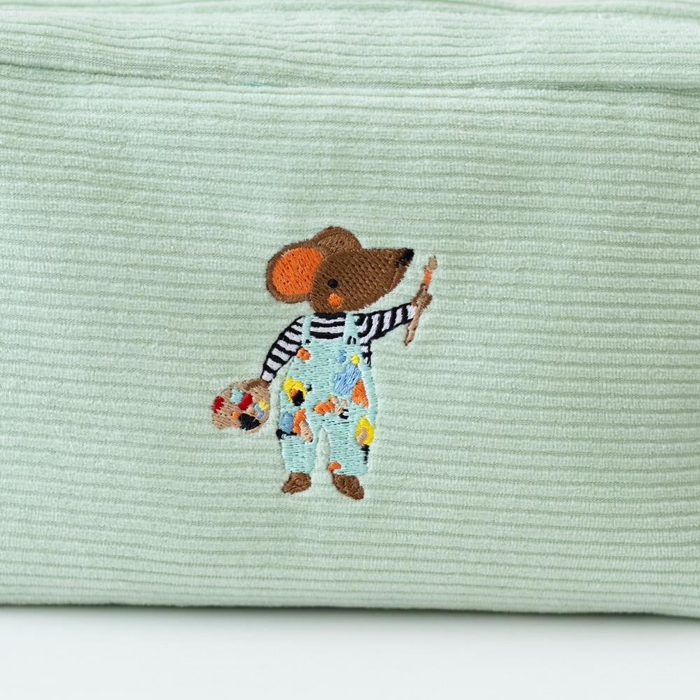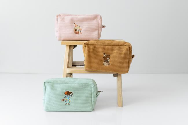 Pudra Rengi fitilli kadife üzerine gösterilen ayıcık figürü nakışlıdır.