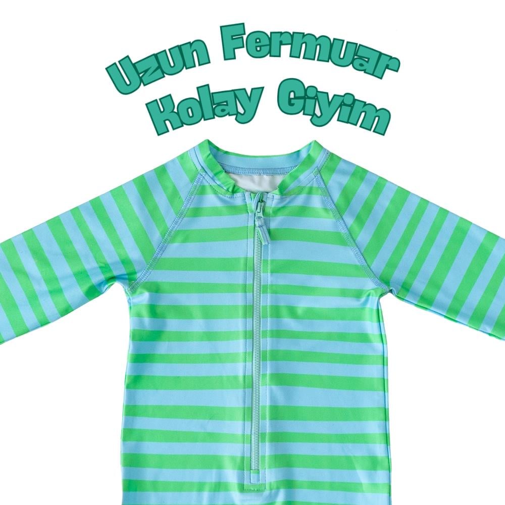 Mama Yoyo UV Korumalı Önden Fermuarlı Tulum Mayo Çizgili