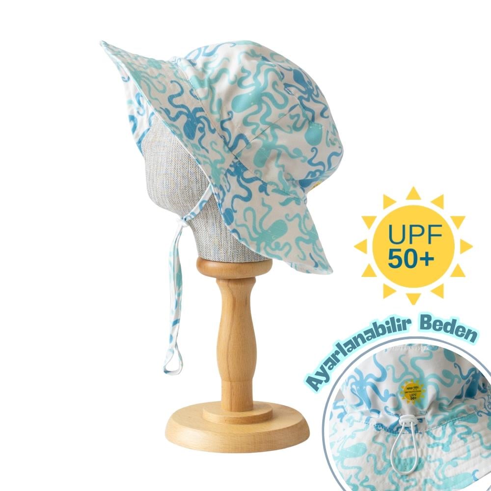 Arkasındaki ayarlanabilir lastik detayı, şapkanın bebeklikten 7 yaşa kadar rahatlıkla kullanılmasına olanak tanır. Ön kısmındaki ayarlanabilir çene ipi sayesinde rüzgârlı havalarda bile sabit kalır.