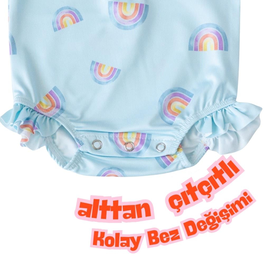 Su itici %100 polyester yapı Önden fermuarlı – kolay giydirme Alttan çıtçıtlı – pratik bez değişimi Fırfırlı külot detayıyla sevimli görünüm