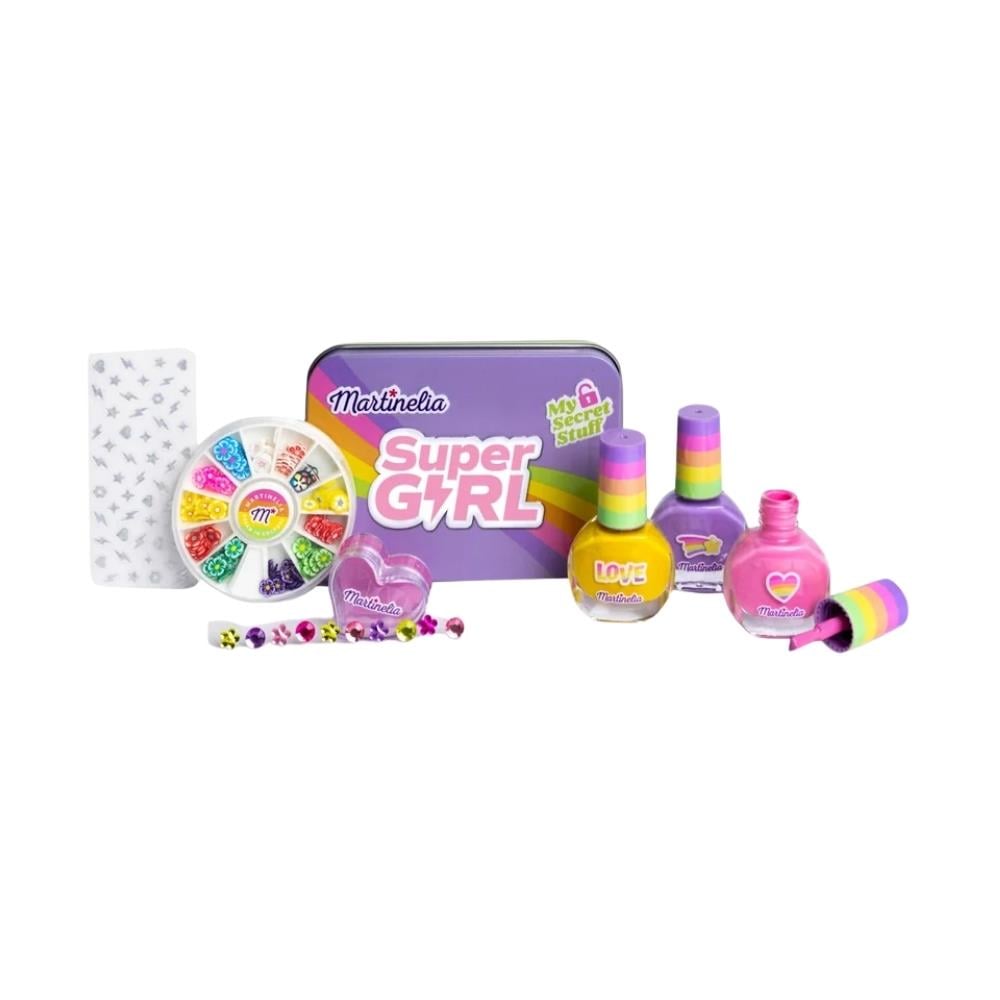 Ürün İçeriği: 3 Adet Oje, Sticker, Mücevher Çıkartmaları, Tırnak Süslemeleri Çarkı, Dudak Parlatıcısı, Teneke Kutu