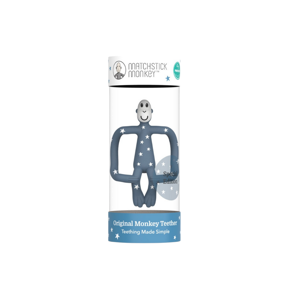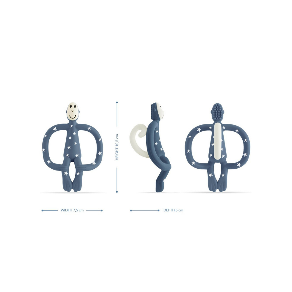 Matchstick Monkey Silikon Diş Kaşıyıcı, ağrıyan diş etlerine yatıştırıcı bir rahatlama sağlayan eğlenceli, dokulu silikon diş kaşıyıcıdır. BioCote® Antimikrobiyal teknoloji ile üretilmiştir.