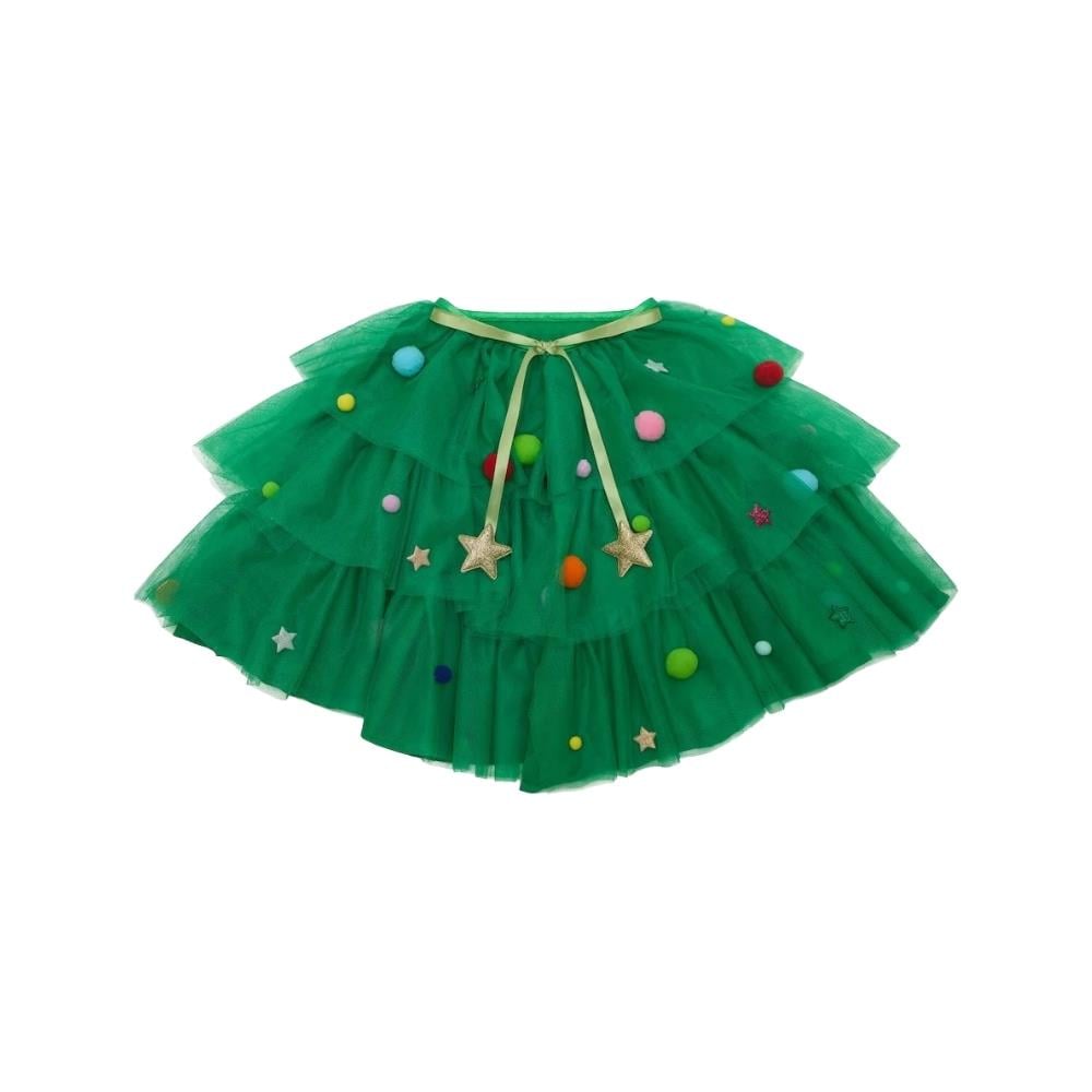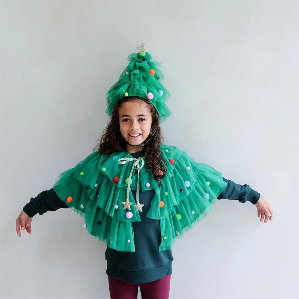 Mimi & Lula Christmas Tree Pelerin ile kıyafetlerine büyük bir neşe kat! Çok renkli ponponlar ve simli kumaş yıldızlarla süslenmiş harika yeni yıl temalı pelerin, dönmek, dans etmek veya sadece eğlenmek için mükemmeldir.