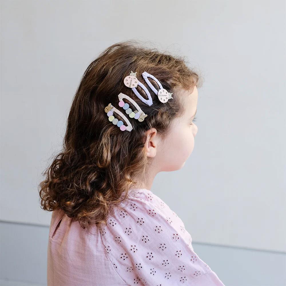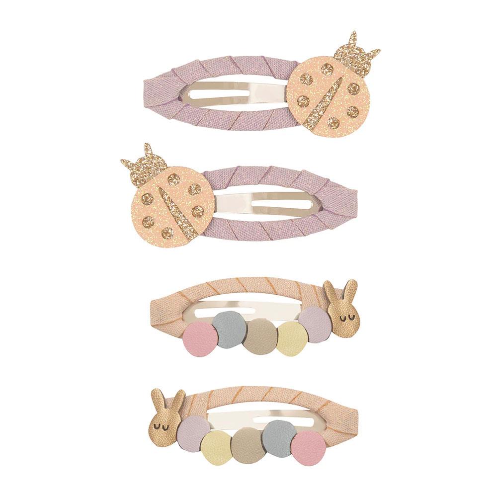 Bu sevimli pastel renklerdeki uğur böcekleri ve rengarenk tırtıllar, her saç modeline neşe katacak.