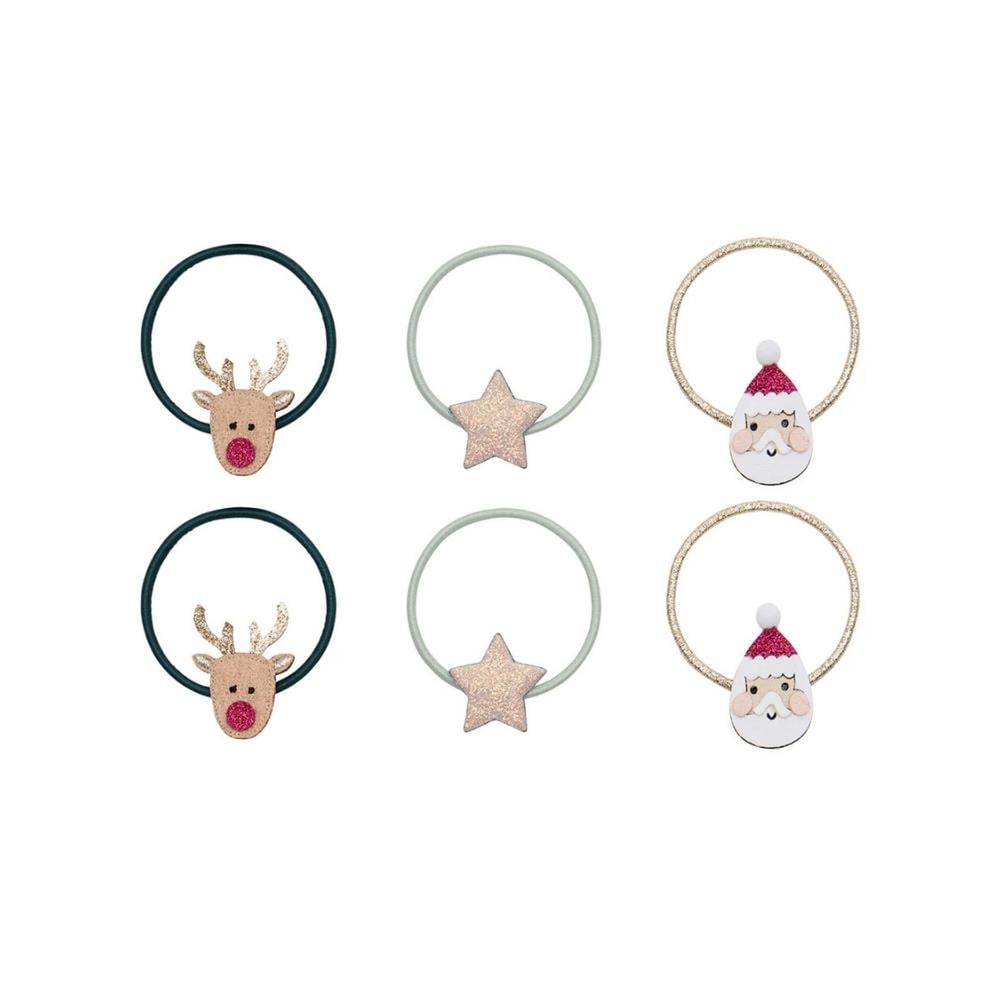 Mimi & Lula Santa & Rudolph 6'lı Lastik Toka, Noel Baba ve onun sevimli yardımcısı Rudolf'u içeren harika bir mini pony seti sunar! Altı adet tam boy lastik toka, kırmızı, yeşil ve altın renginin enfes bir Noel paletinde hazırlanmıştır ve mükemmel bir kombin oluşturur.