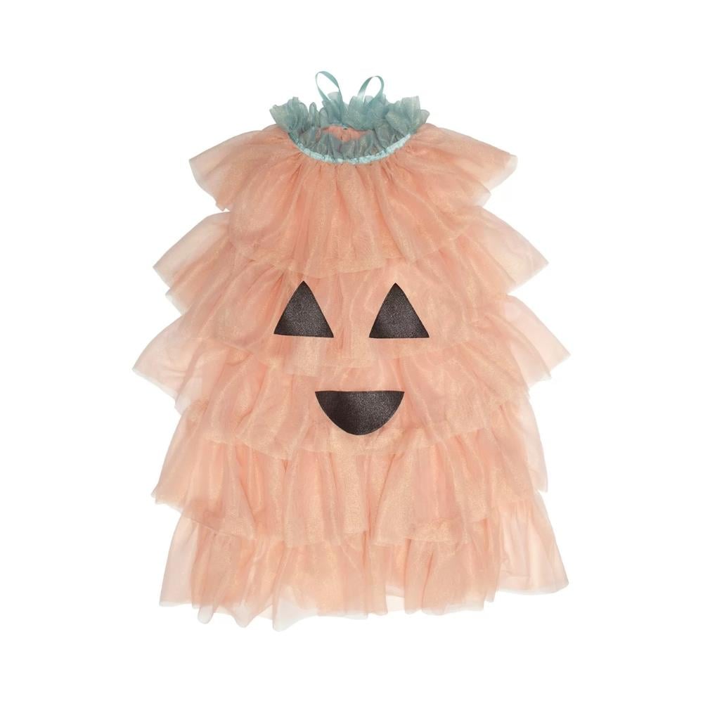 Süper yumuşak, ışıltılı turuncu tül katmanları ve renkli yakası ile Cadılar Bayramı’nda korkutucu olmaktansa tatlılığı tercih eden çocuklar için eğlenceli bir kostüm.