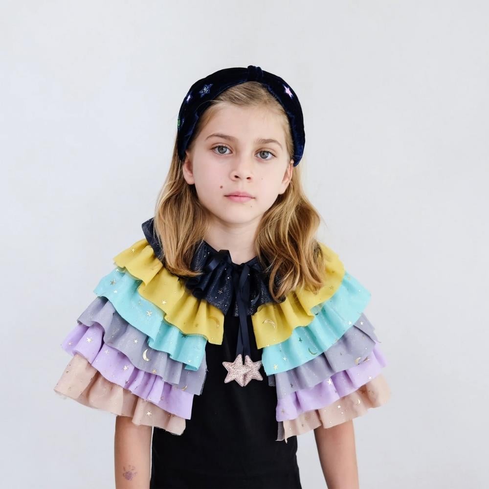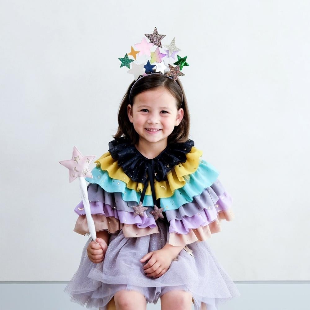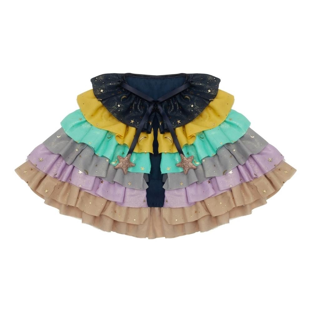 Ay ve yıldızlardan oluşan metalik altın takımyıldızlarıyla bezeli, 6 kat süper yumuşak tül kumaşa sahip bu pelerin, yaratıcı oyunlar ve partiler için mükemmel.