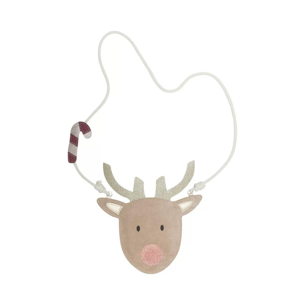 Bu sevimli küçük ren geyiği çantası çocukların kombinlerine neşe katacak! Büyüleyici simli boynuzları ve pembe simli burnuyla bu sevimli geyik, yılbaşı kutlamaları için de harika bir hediye seçeneği.