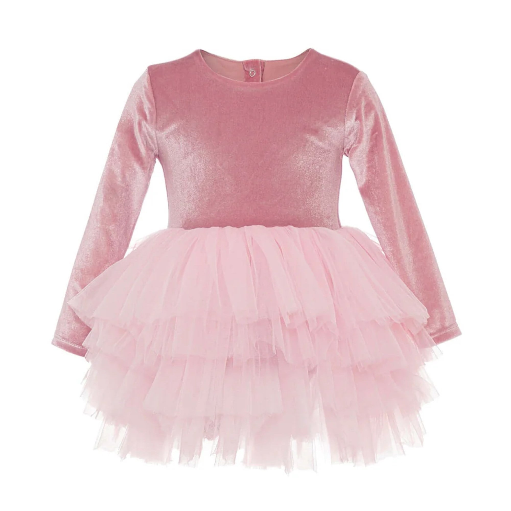 Mayo şeklinde tek parça kadife body ve tül etekten oluşan rahat bir tütü elbisedir.
