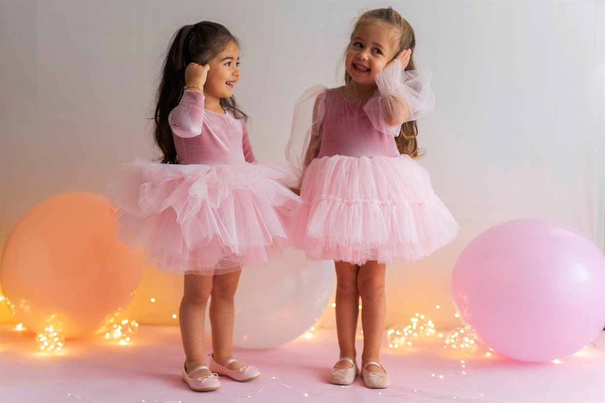 Mini Celebrities Pink Velvet Balloon Sleeve Tütü Elbise