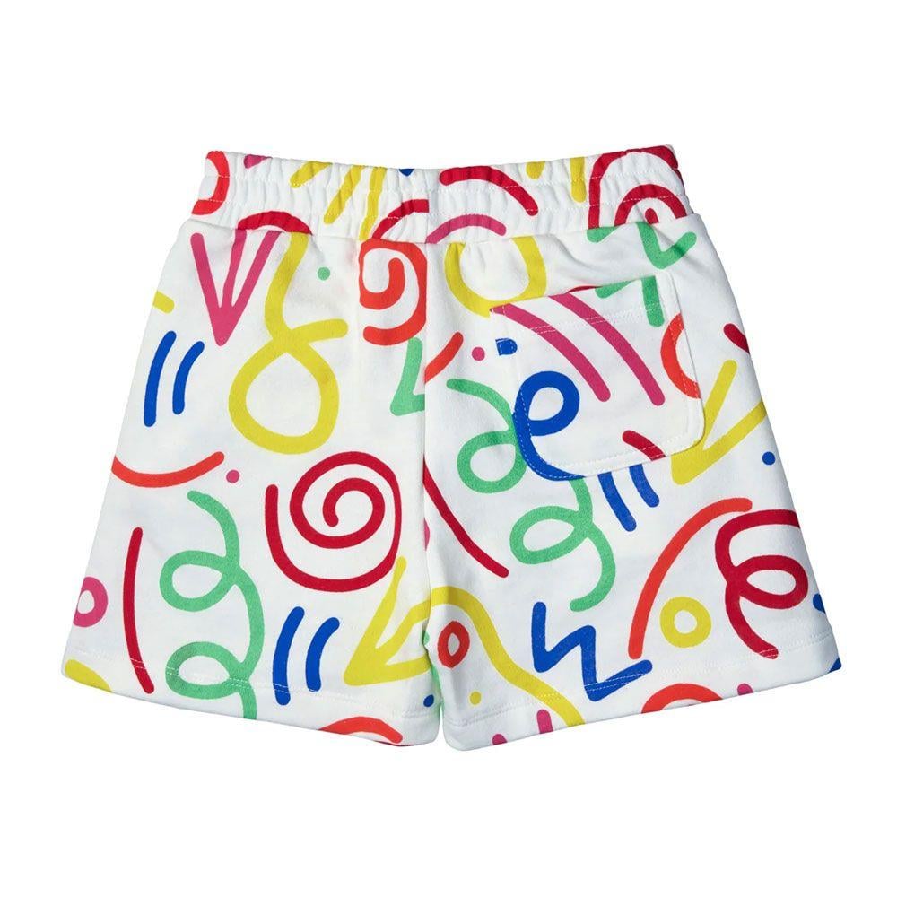 Pamuk içerikli, standart kalıptan, renkli Miniliq desenli, beli lastikli, arka cep detaylı şardonsuz şort