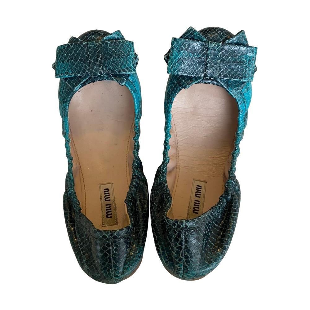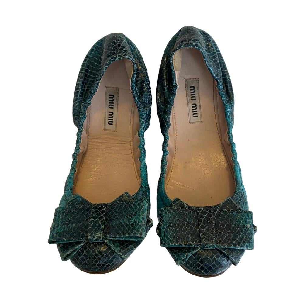Miu Miu Yeşil Yılan Deri Görünümlü Babet - 35