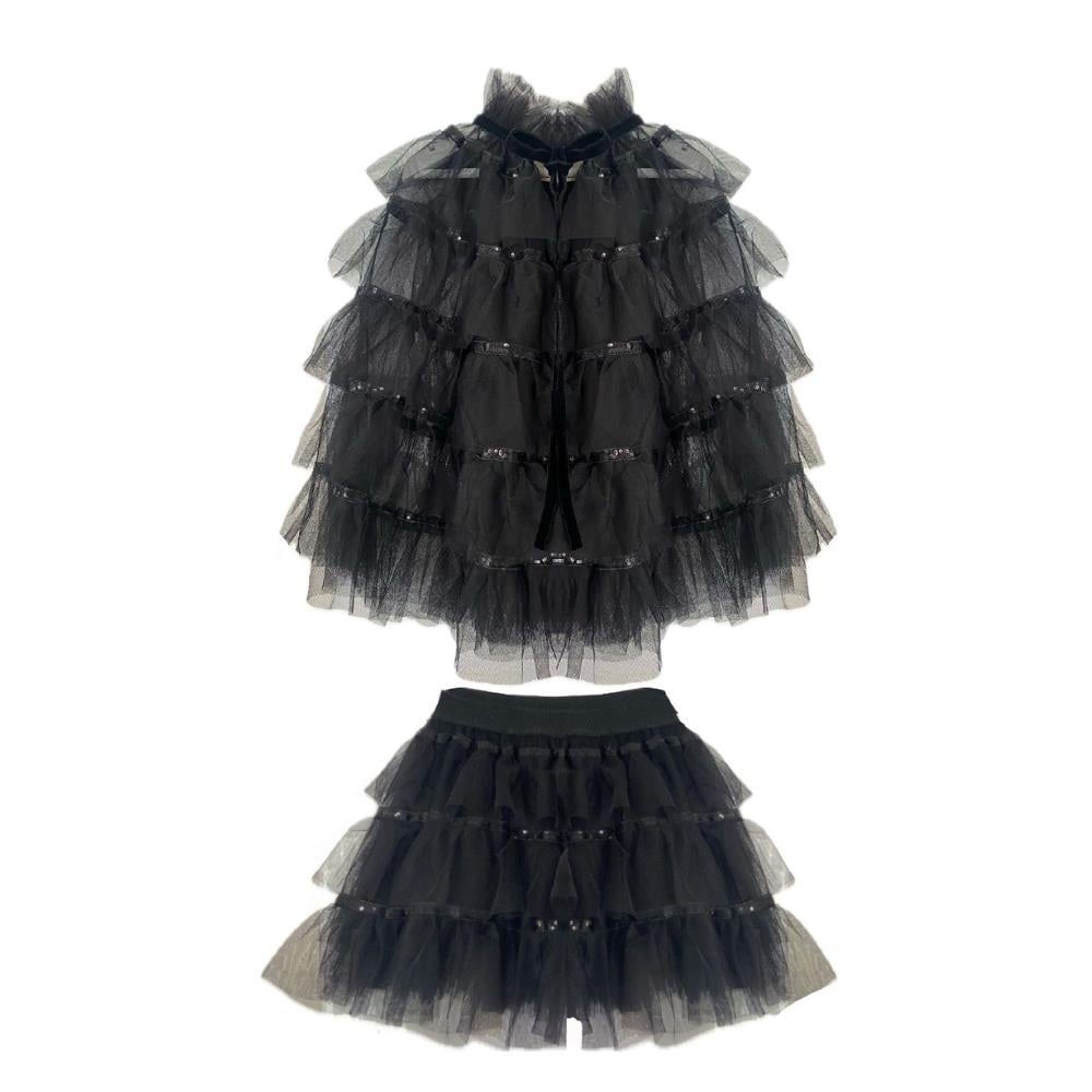 Moondale’s Kids Siyah Tül Fırfırlı Etek ve Pelerin Seti