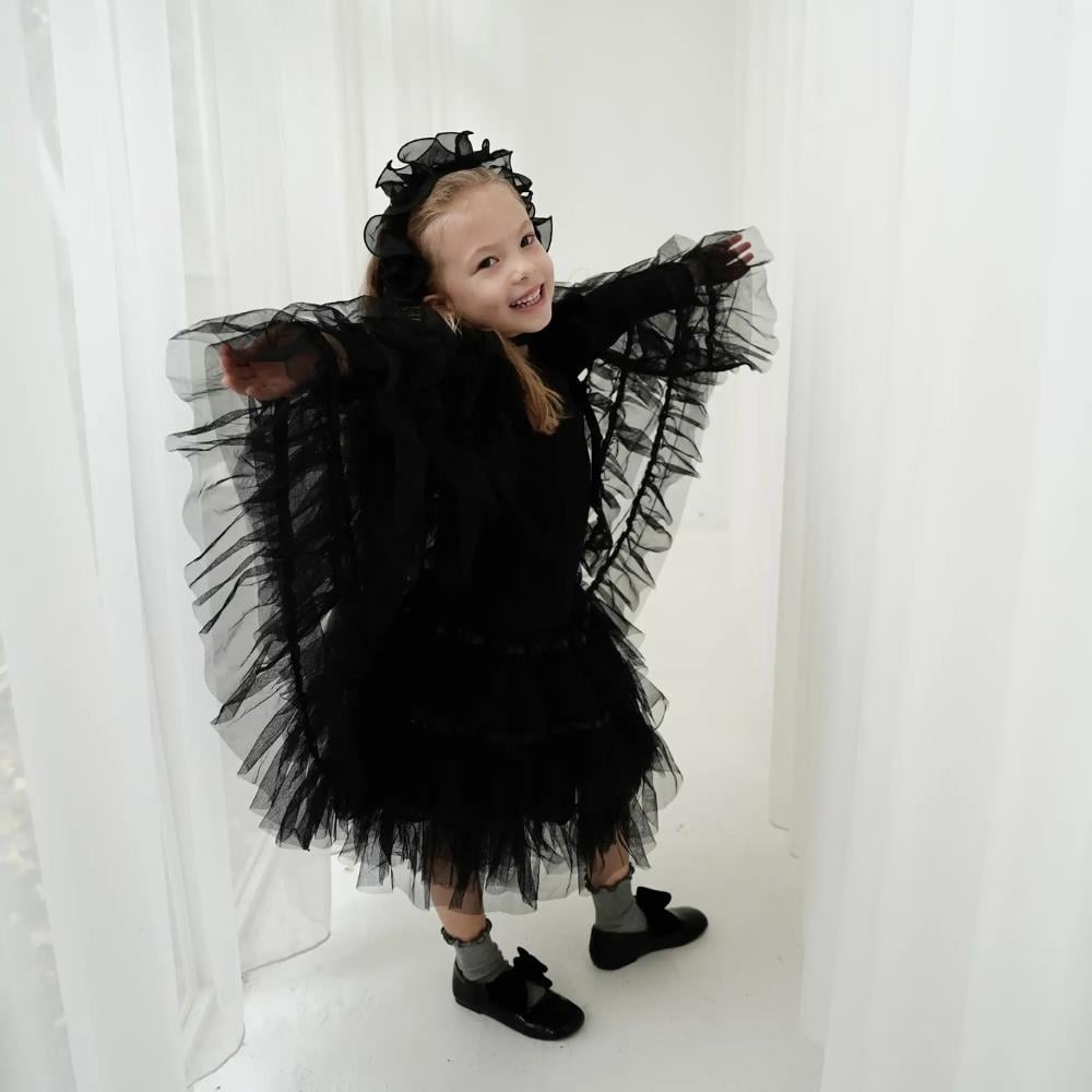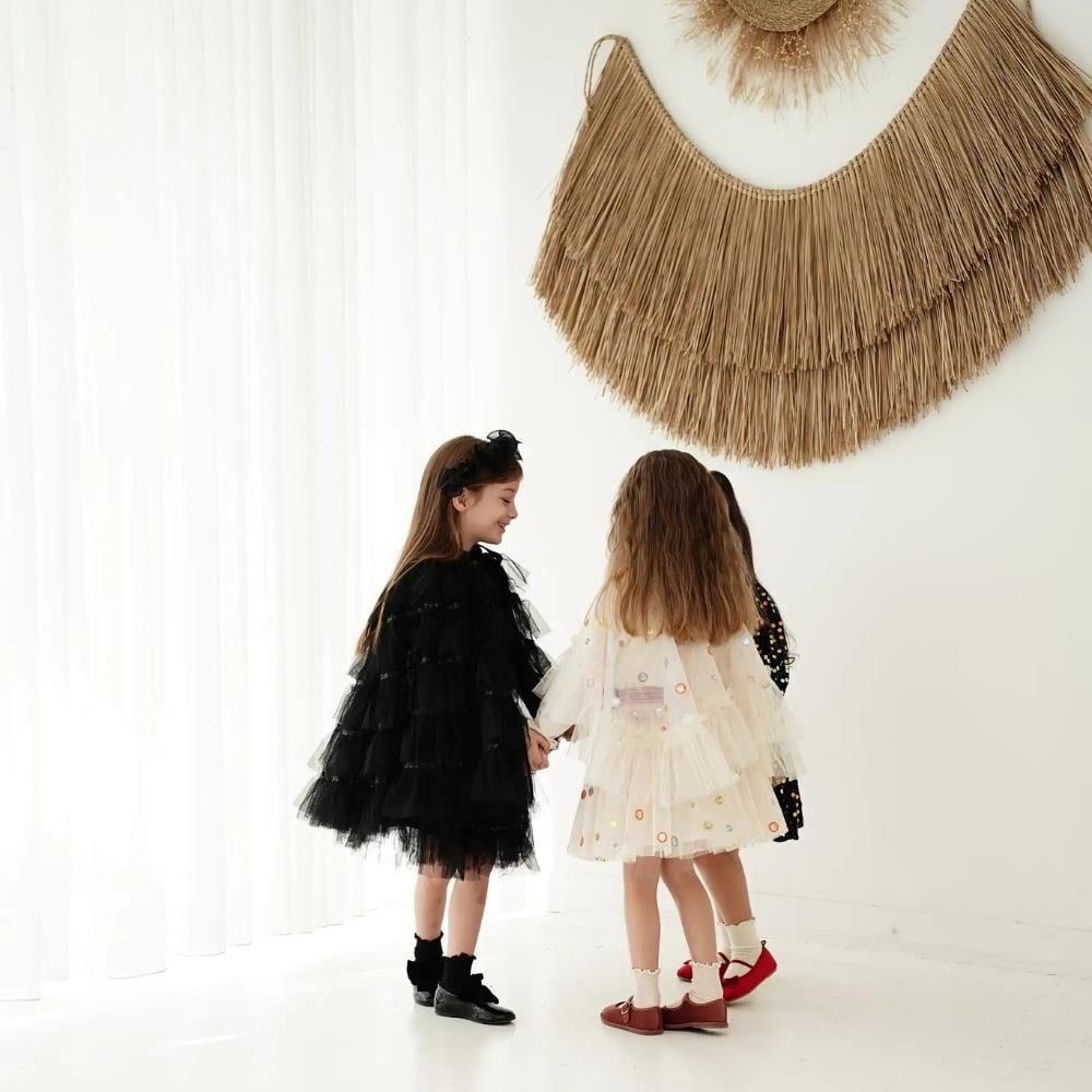 Kat kat siyah tül detayları ile hareket kazandırılan bu set, sofistike bir görünüm elde etmek isteyen küçük hanımlar için mükemmel bir seçim.