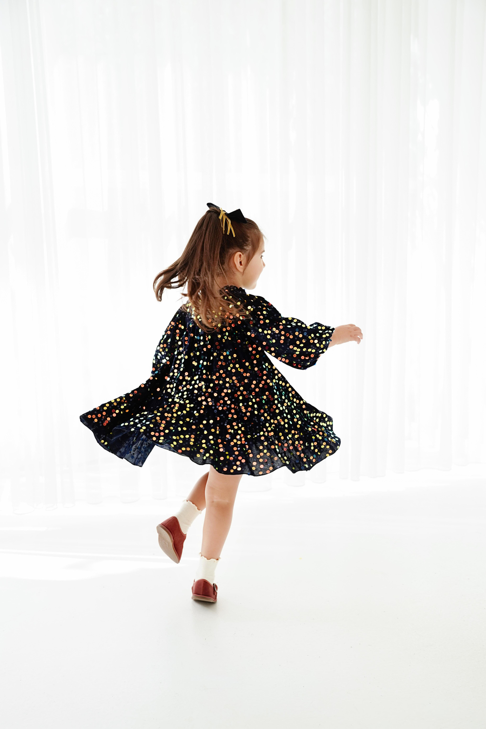Miniklere hem rahatlık hem de şıklık sunan bu özel elbise, kış mevsiminin tüm güzelliklerini bir araya getiriyor. %100 polyester kadife kumaştan üretilmiş dış yüzeyi, ışıltılı payetlerle bezenmiş olup, her hareketinde parlayan bir zarafet sunar. %100 pamuk astarı ise cilde dost dokusuyla ekstra konfor sağlar. İster günlük bir kombin, ister özel günlerde göz alıcı bir seçim arayanlar için ideal bir tercih. Christmas davetlerinden kış aylarının neşeli anlarına kadar her ana eşlik etmeye hazır! ✨