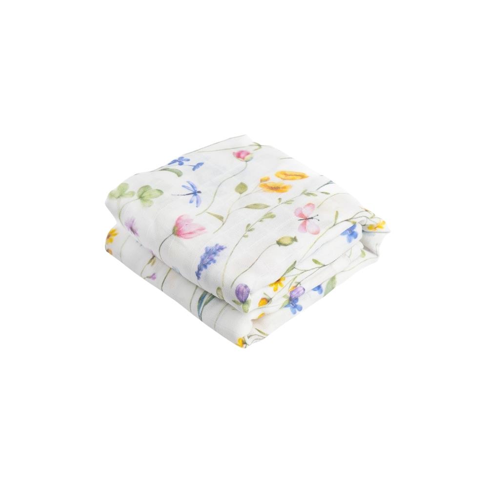 Çiçek Desen Çift Kat Müslin 120X120 CM; 120x120 ebat çift kat organik kumaş.