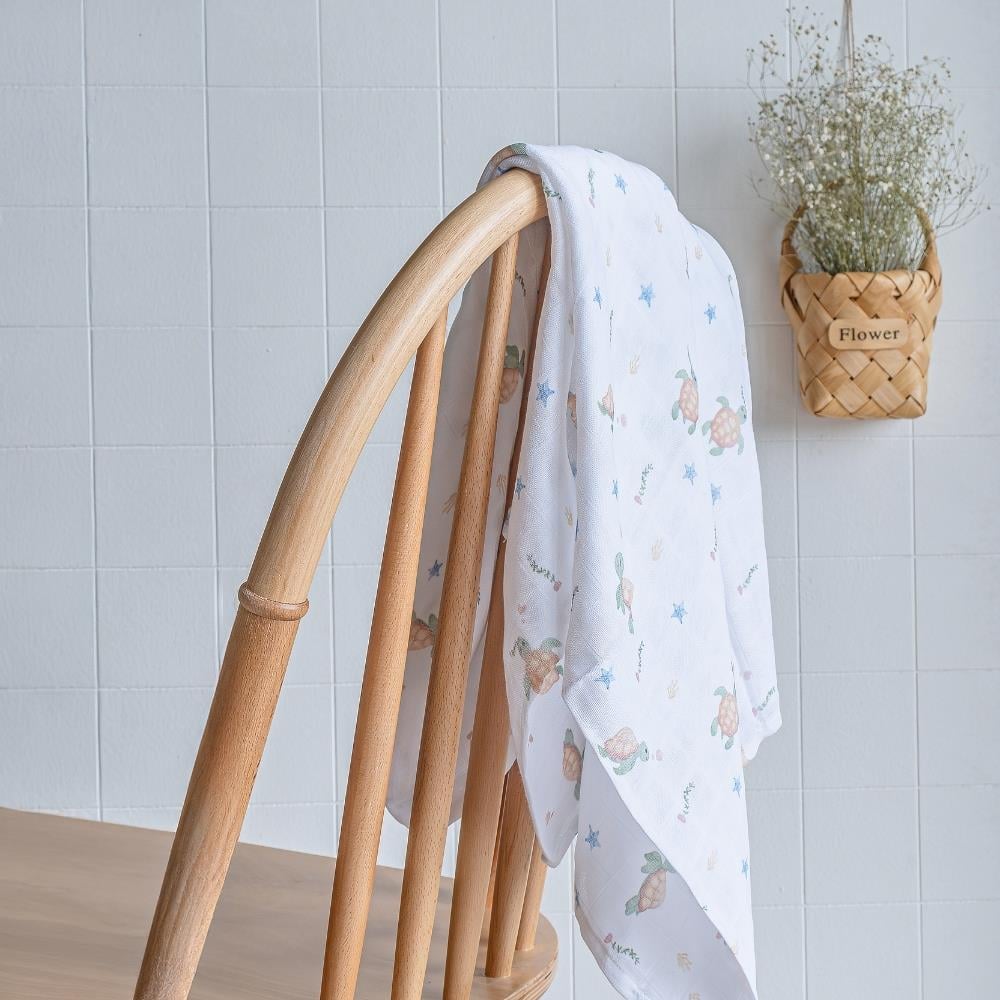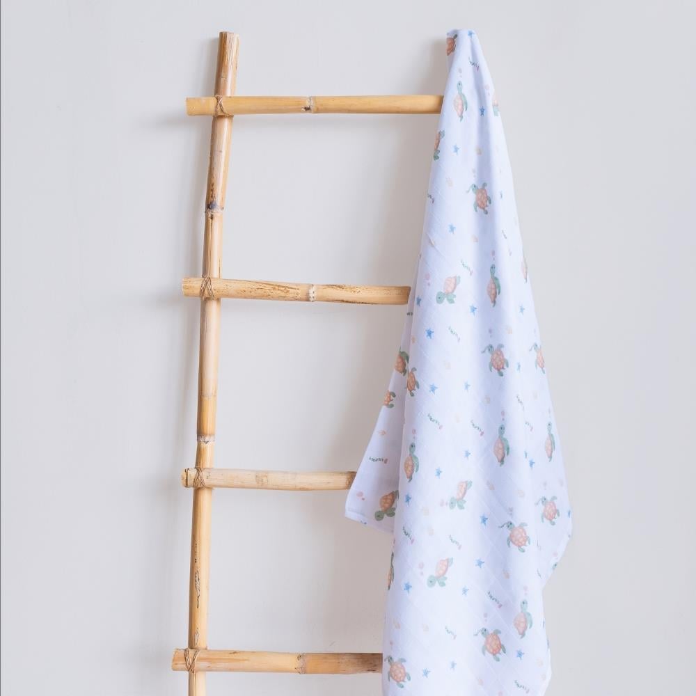 Gezen Kaplumbağa Desen Çift Kat Müslin 120X120 CM; 120x120 ebat çift kat organik kumaş.