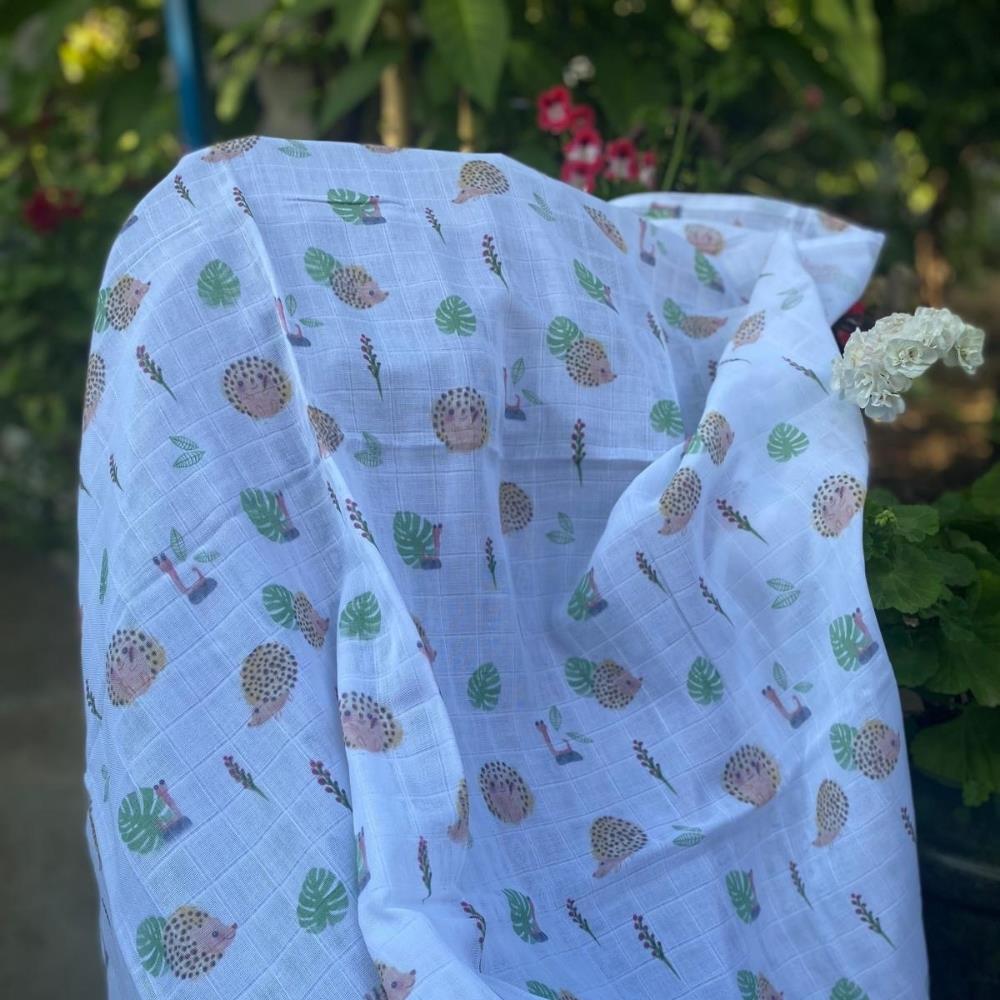 Üzüm Kirpi Desen Çift Kat Müslin 120X120 CM; 120x120 ebat çift kat organik kumaş.