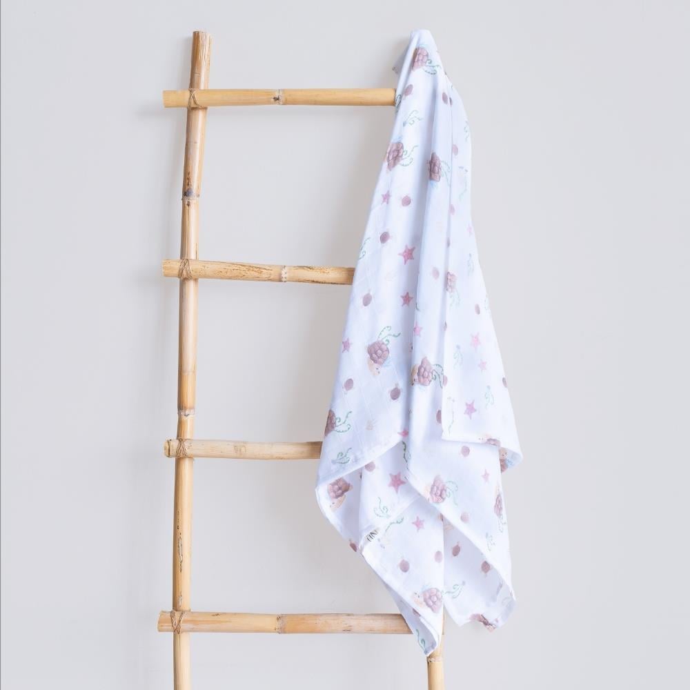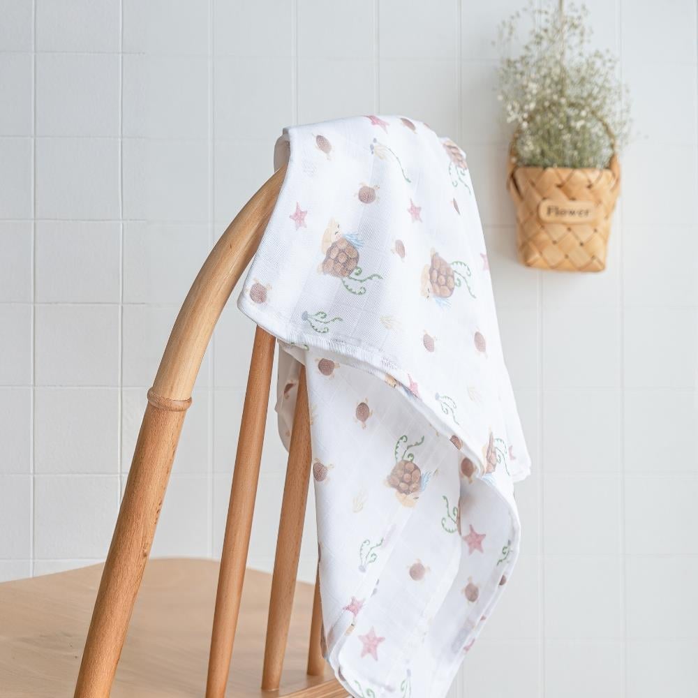 Uyuyan Kaplumbağa Desen Çift Kat Müslin 120X120 CM; 120x120 ebat çift kat organik kumaş.
