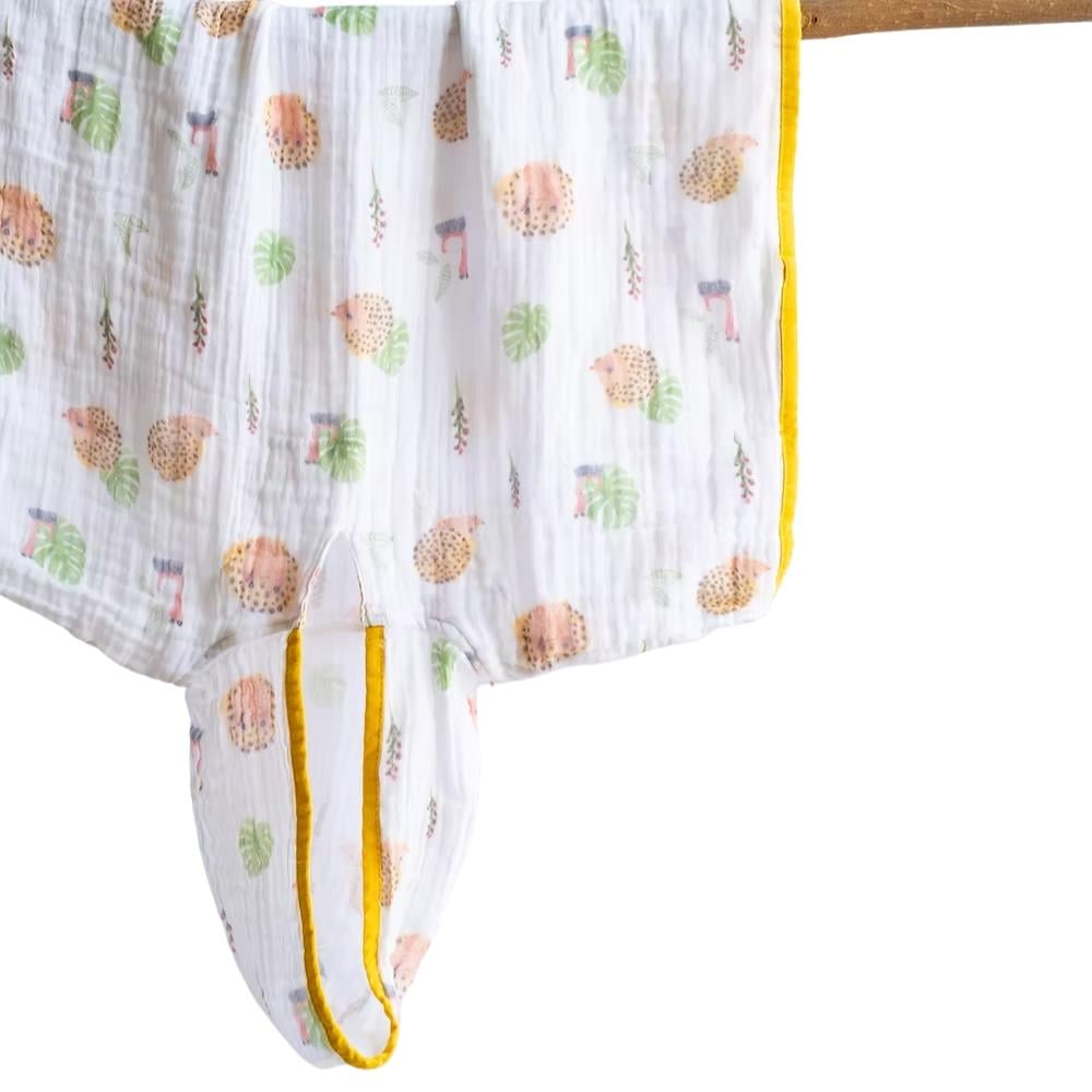 %100 Organik Pamuk Müslin suyu hızlıca emer, hızlaca kurur, taşıması kolaydır. Eğlenceli desenleriyle Plaj kıyafeti gibi üzerinde çıkarmak istemeyeceksiniz!