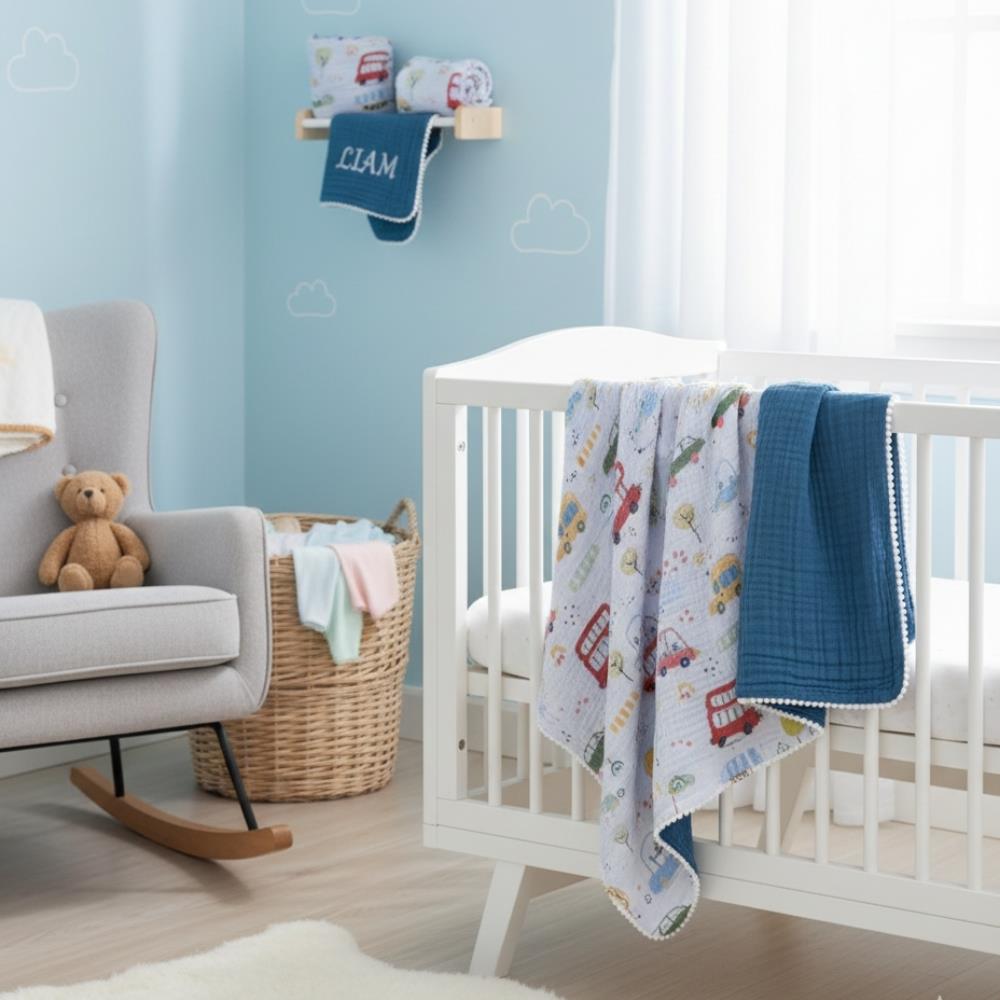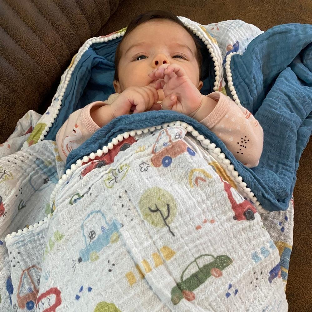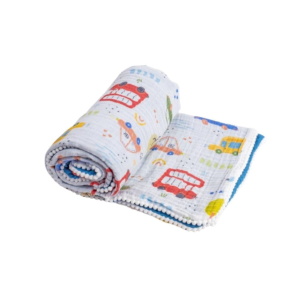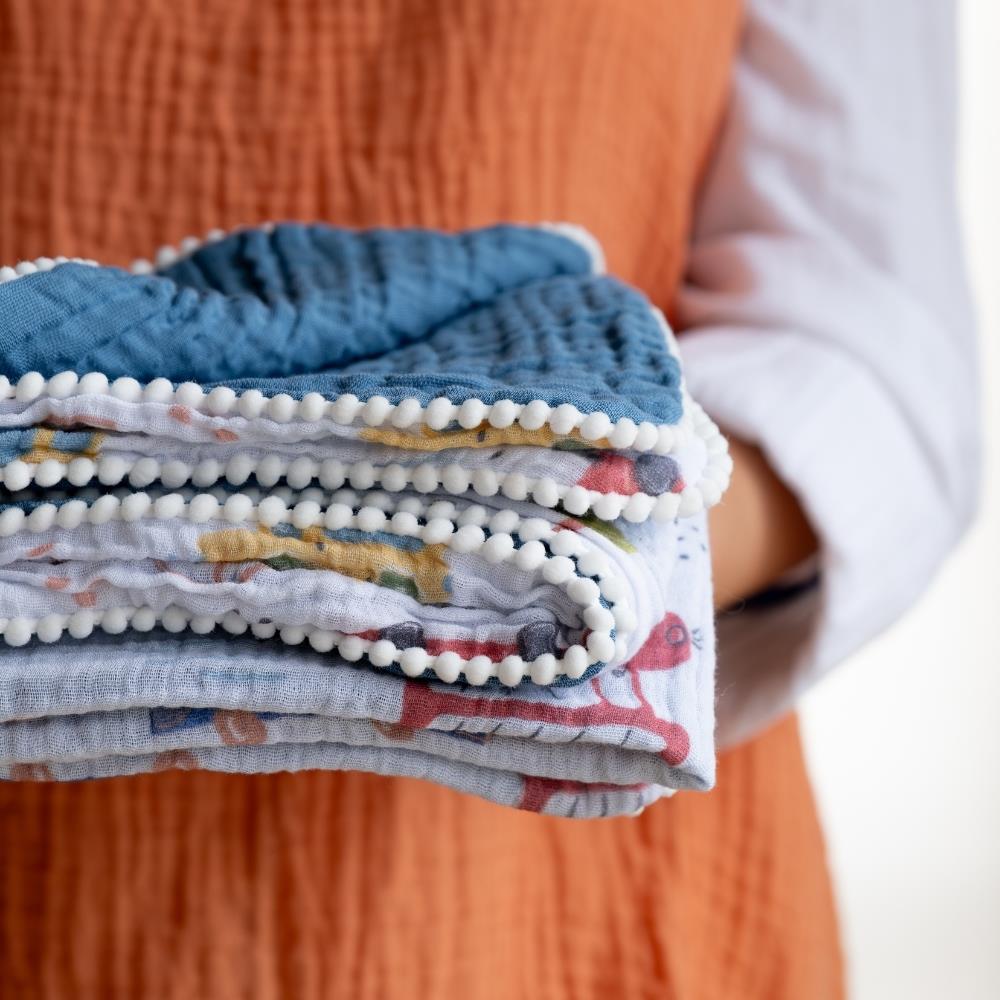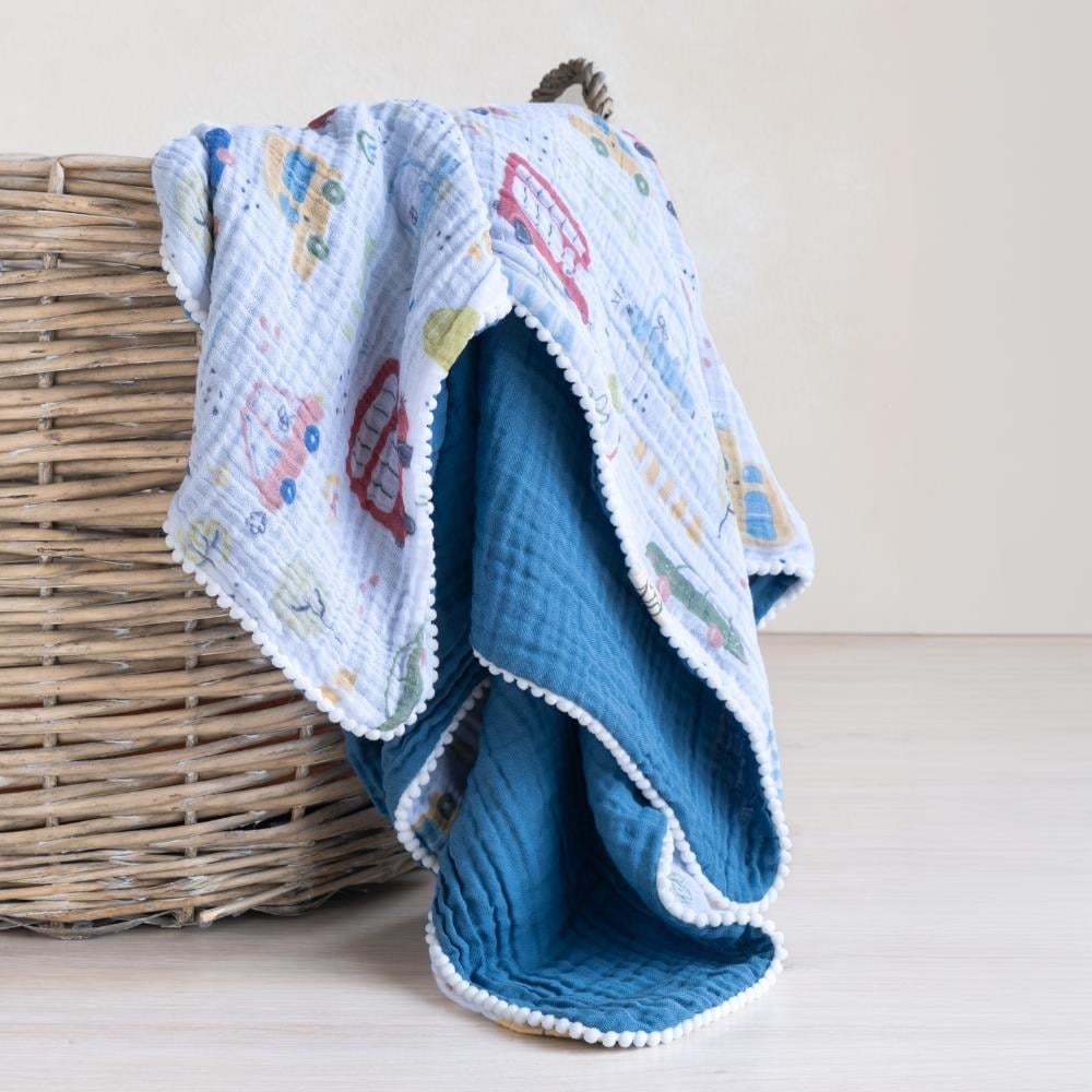 Sade, zarif ve nostaljik bir tasarıma sahip olan Münü bebek battaniyelerimiz; ekstra yumuşak, % 100 pamuklu, 4katlı müslin kumaştan üretilmiştir. Bir yüzü rengarenk ARABA desen diğer yüzü mavi renktir. Hem bebeğinizin cildi hava alır hem de sıcacık tutar. Her mevsim kullanıma uygundur. 100x100 cm ebatları ile bebek arabası veya bebek karyolası battaniyesi için mükemmel boyuttur. 0-48 ay kullanım için ideal ölçüdür.
