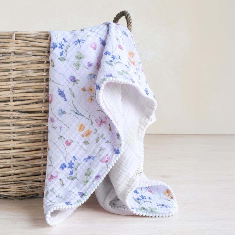 Sade, zarif ve nostaljik bir tasarıma sahip olan Münü bebek battaniyelerimiz; ekstra yumuşak, % 100 pamuklu, 4katlı müslin kumaştan üretilmiştir. Bir yüzü bahar Çiçekleri desen diğer yüzü pembe renktir. Hem bebeğinizin cildi hava alır hem de sıcacık tutar. Her mevsim kullanıma uygundur. 100x100 cm ebatları ile bebek arabası veya bebek karyolası battaniyesi için mükemmel boyuttur. 0-48 ay kullanım için ideal ölçüdür.